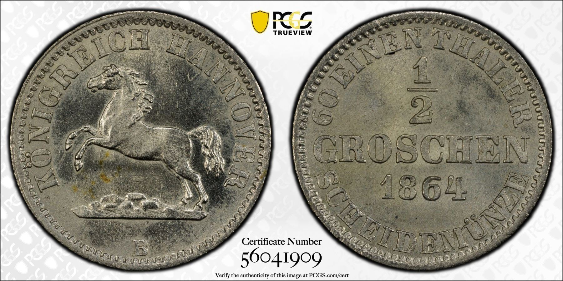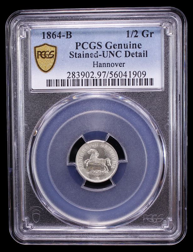 HANOVER: George V, 1851-1866, BI 1/2 groschen, 1864, PCGS UNC details