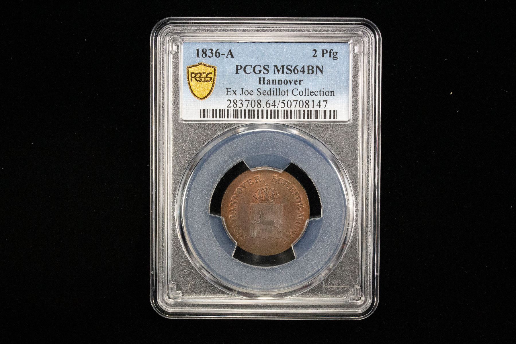 HANOVER: William IV, 1830-1837, AE 2 pfennig, 1836, KM-167.1, a wonderful lustrous example! PCGS graded MS64 BN, ex Joe Sedillot Collection.