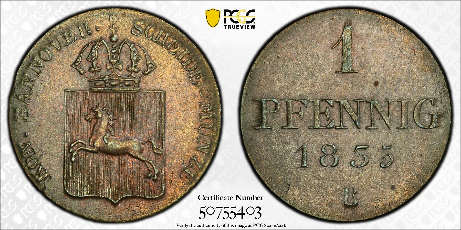 HANOVER: William IV, 1830-1837, AR 3 groshchen, 1835-B, PCGS MS64 BN