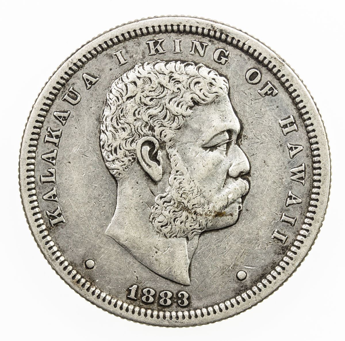 HAWAII: Kalakaua, 1874-1891, AR ½ dollar, 1883, KM-6, one-year type, VF.
