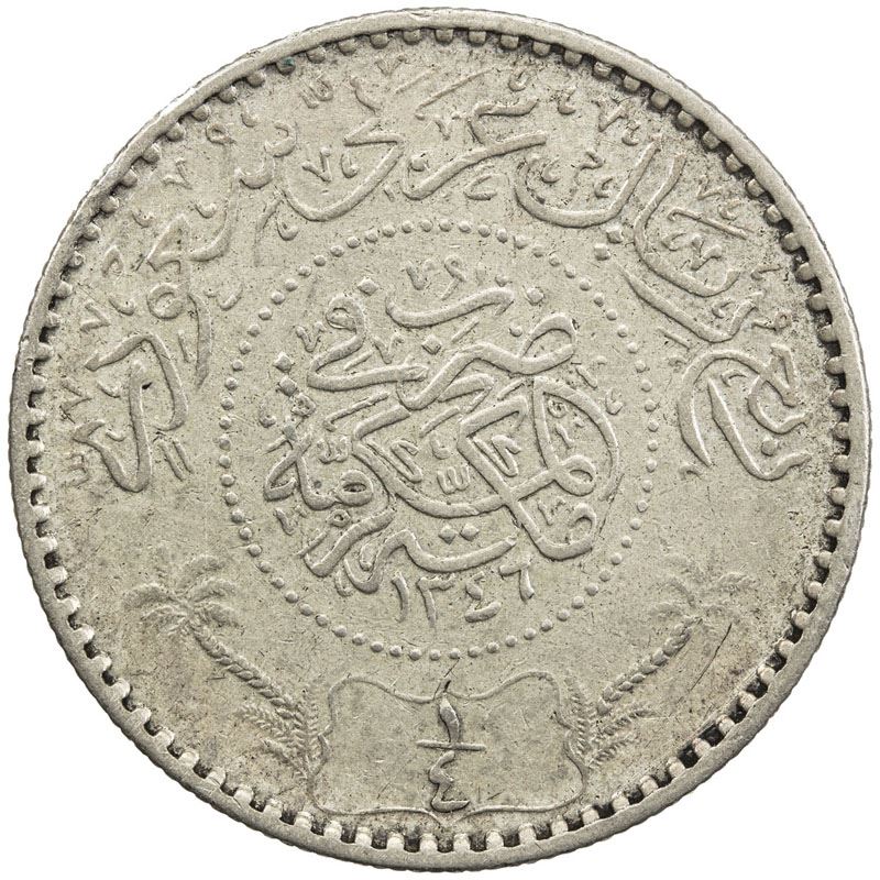 HEJAZ & NEJD: 'Abd al-'Aziz b. Sa'ud, 1926-1932, AR ¼ riyal, Makka al-Mukarrama (Mecca), AH1346, KM-10, choice EF.