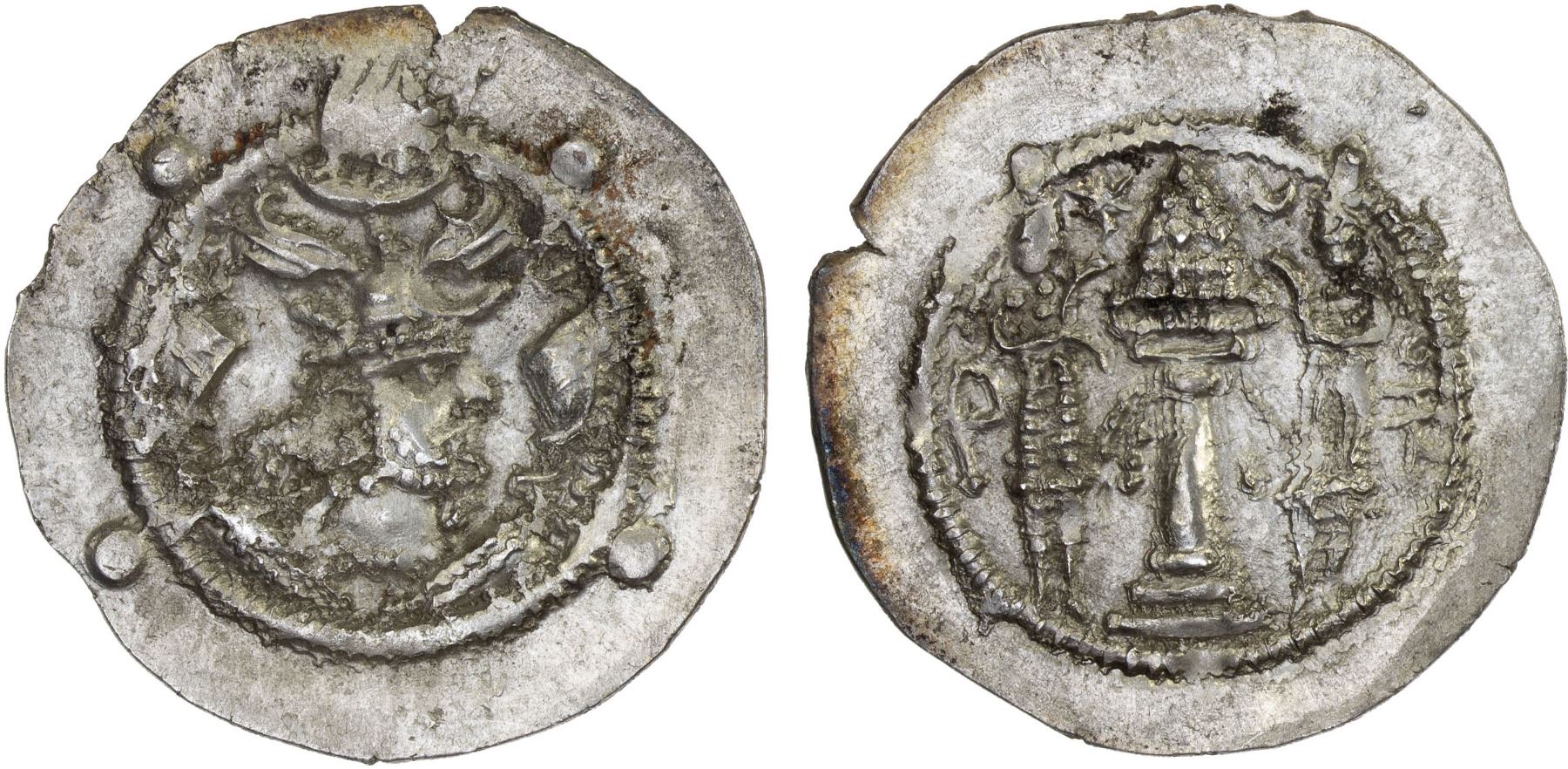 HEPHTHALITE: Alxon/Chionite, ca. 475-565, AR drachm (3.79g), NM, ND, Mitch-1455/56, G-287., Peroz type, 4 pellets in obverse margin, Pahlavi letter M to left and Bactrian arxon in lieu of mint name to right on reverse, choice XF.