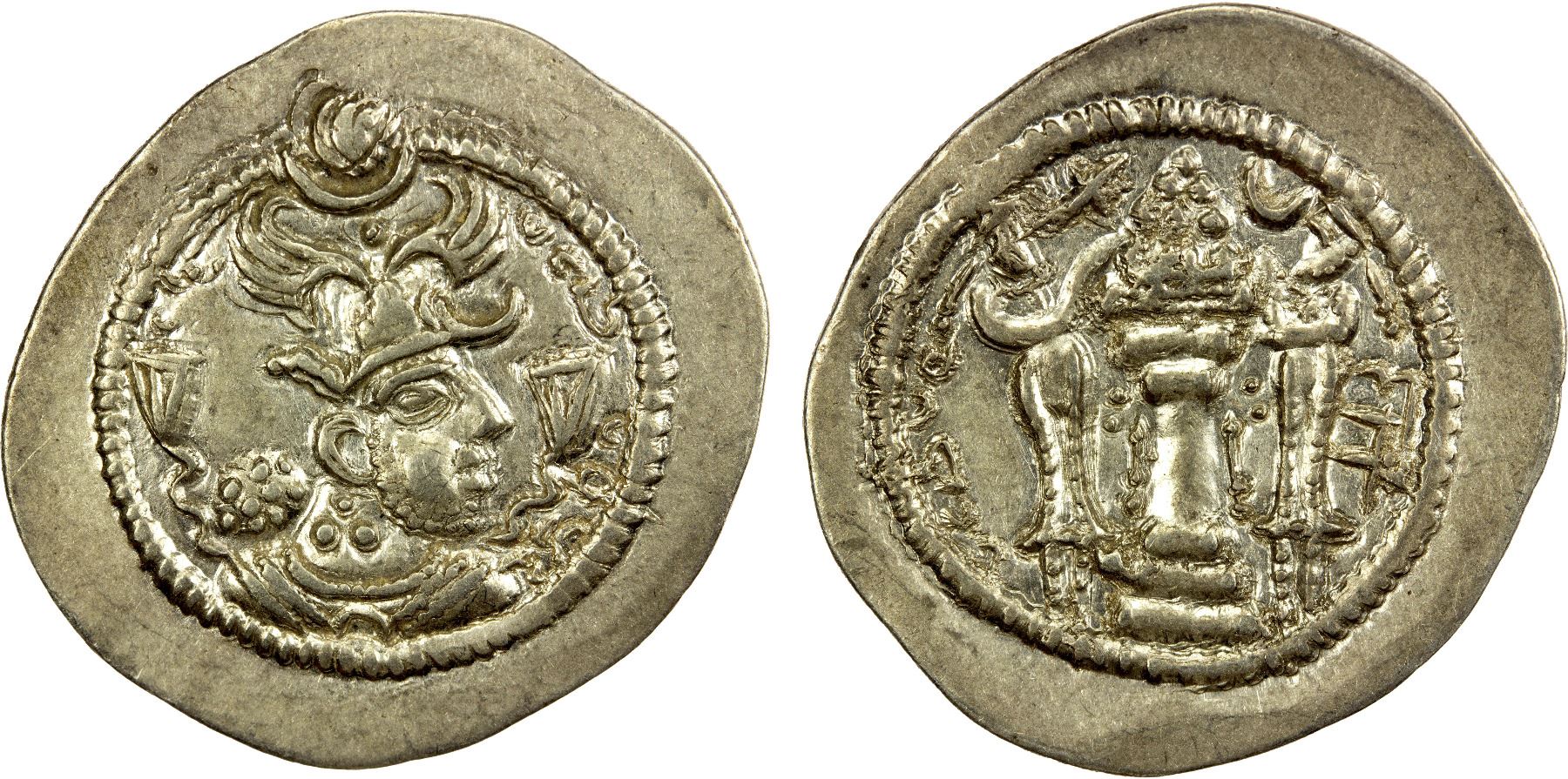 HEPHTHALITE: Anonymous, ca. 486-490+, AR drachm (4.19g), G-, derived from Göbl-176 of Peroz, with normal winged crown of Peroz, blundered obverse legend, blundered legend left and imitative DA mnt signature (for Darabjird) to right on reverse, XF-AU, RR. These drachms closely imitate issues of the Sasanian Peroz (457-484), both his second type (struck circa 460-474) and the abundant third type (474-484). Hephthalite invasions into Sasanian lands started about 474, again about 480, finally in 484, when Peroz was killed and most of Khorasan brought under Hephthalite control. Sasanian coinage at Marw and Herat ceased, not to be resumed after those cities were retaken by the Sasanians under Kavad I about 512. Peroz was ransomed during his defeat in the second battle about 482 for "30 mule packs of silver drachms", which must have become the standard circulation in Hephthalite territories, with large numbers found in Tokharistan countermarked with various local symbols. The common Hephthalite coinage of their own were imitations of Peroz type three, with four large pellets added to the obverse margin (Göbl-287/289, including several variants), most of which bear the mint name boxlo in the Baktrian script on the reverse in the standard position at the far right. We do not know when this series was introduced, but would guess at some time during the first right of Kavad I (488-497).A significant group of previously unrecognized type has recently been brought to market. The drachms are relatively close copies of Peroz drachms, both his second type (Göbl-171) and third type (Göbl 174 & 176). They lack the four large pellets in the obverse margin. The obverse may have no legend whatsoever, or a crude copy of the Peroz legend or completely meaningless script. The reverse may have the Pahlavi letter "M" as on G-171 and 176, often hopelessly engraved; some retain a very crude imitation of a Pahlavi mint signature. This type would have been introduced soon after the 484 conquest, perhaps after the ransom supply was dispersed and now coins had to be minted. An extremely rare example of this type bears a large star to the left of the king's crown, first introduced by Kavad I for his first type in 488. The rarity of the star type suggests that the production of this series ended not long afterwards, probably discontinued during the early 490s. Thus this series was only briefly struck only circa 486-490+.We should mention that a few examples of this newly reported type have in fact been known for a long time, published either as Sasanian Imitations or as poorly engraved examples of Peroz's normal type 2 and type 3 drachms.