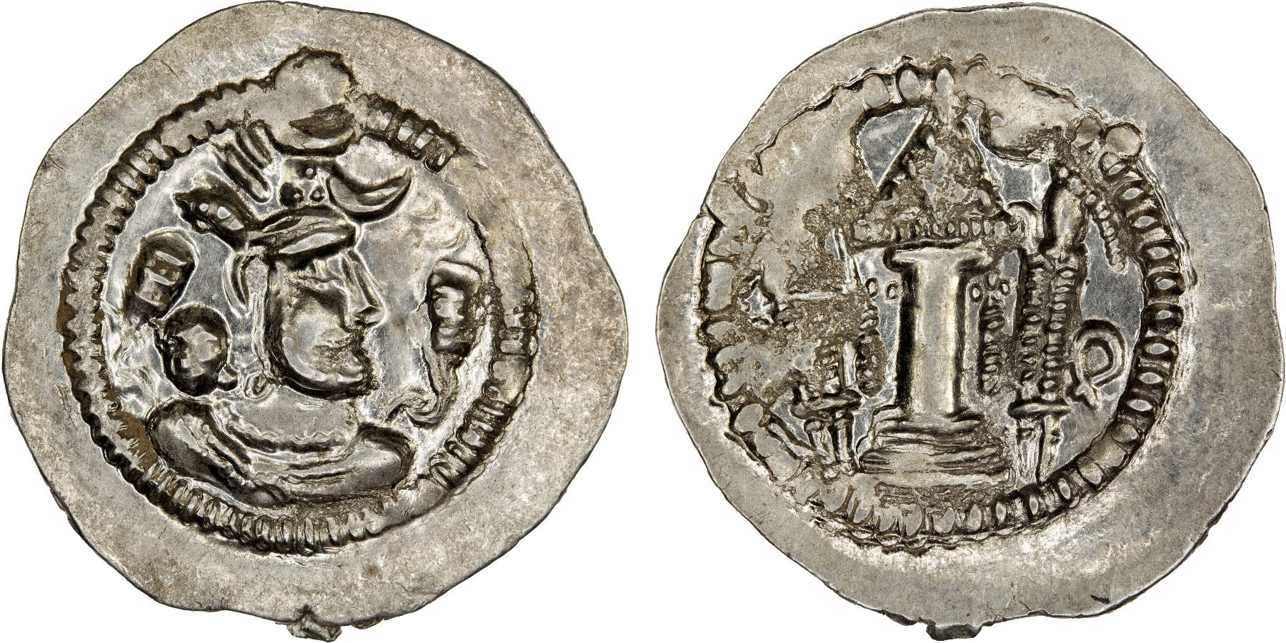 HEPHTHALITE: Anonymous, ca. 486-490+, AR drachm (4.28g), G-, derived from Göbl-171 of Peroz, with turret left and crescent right as part of the crown, two "letters" on the obver, simplified Pahlavi "M" at the right on the reverse, XF-AU, R. These drachms closely imitate issues of the Sasanian Peroz (457-484), both his second type (struck circa 460-474) and the abundant third type (474-484). Hephthalite invasions into Sasanian lands started about 474, again about 480, finally in 484, when Peroz was killed and most of Khorasan brought under Hephthalite control. Sasanian coinage at Marw and Herat ceased, not to be resumed after those cities were retaken by the Sasanians under Kavad I about 512. Peroz was ransomed during his defeat in the second battle about 482 for "30 mule packs of silver drachms", which must have become the standard circulation in Hephthalite territories, with large numbers found in Tokharistan countermarked with various local symbols. The common Hephthalite coinage of their own were imitations of Peroz type three, with four large pellets added to the obverse margin (Göbl-287/289, including several variants), most of which bear the mint name boxlo in the Baktrian script on the reverse in the standard position at the far right. We do not know when this series was introduced, but would guess at some time during the first right of Kavad I (488-497).A significant group of previously unrecognized type has recently been brought to market. The drachms are relatively close copies of Peroz drachms, both his second type (Göbl-171) and third type (Göbl 174 & 176). They lack the four large pellets in the obverse margin. The obverse may have no legend whatsoever, or a crude copy of the Peroz legend or completely meaningless script. The reverse may have the Pahlavi letter "M" as on G-171 and 176, often hopelessly engraved; some retain a very crude imitation of a Pahlavi mint signature. This type would have been introduced soon after the 484 conquest, perhaps after the ransom supply was dispersed and now coins had to be minted. An extremely rare example of this type bear a large star to the left of the king's crown, first introduced by Kavad I for his first type in 488. The rarity of the star type suggests that the production of this series ended not long afterwards, probably discontinued during the early 490s. Thus this series was only briefly struck only circa 486-490+.We should mention that a few examples of this newly reported type have in fact been known for a long time, published either as Sasanian Imitations or as poorly engraved examples of Peroz's normal type 2 and type 3 drachms.