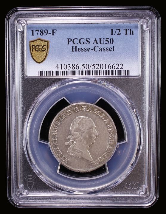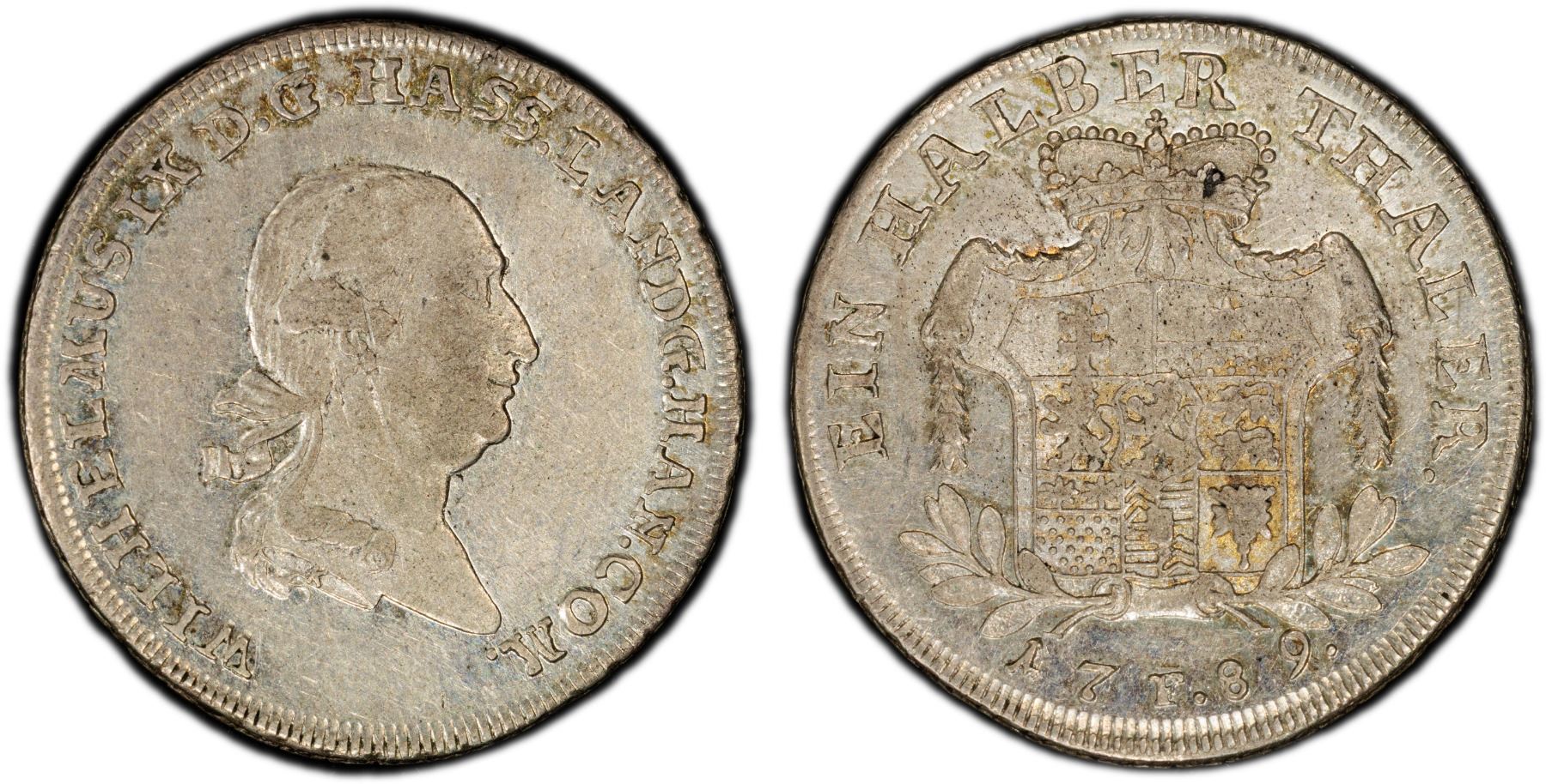 HESSE-CASSEL: Wilhelm IX, 1785-1803, AR 1/2 thaler, Kassel, 1789, KM-534, mintmaster initial F, PCGS graded AU50.