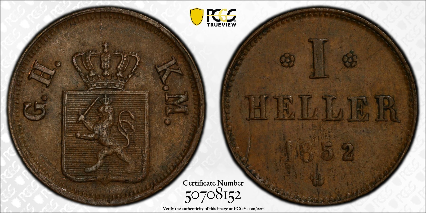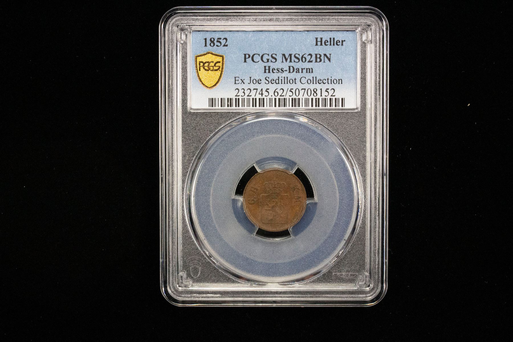 HESSE-DARMSTADT: Ludwig III, 1848-1877, AE heller, 1852, KM-323, Cr-150, a pleasing lustrous example, PCGS graded MS62 BN, ex Joe Sedillot Collection.