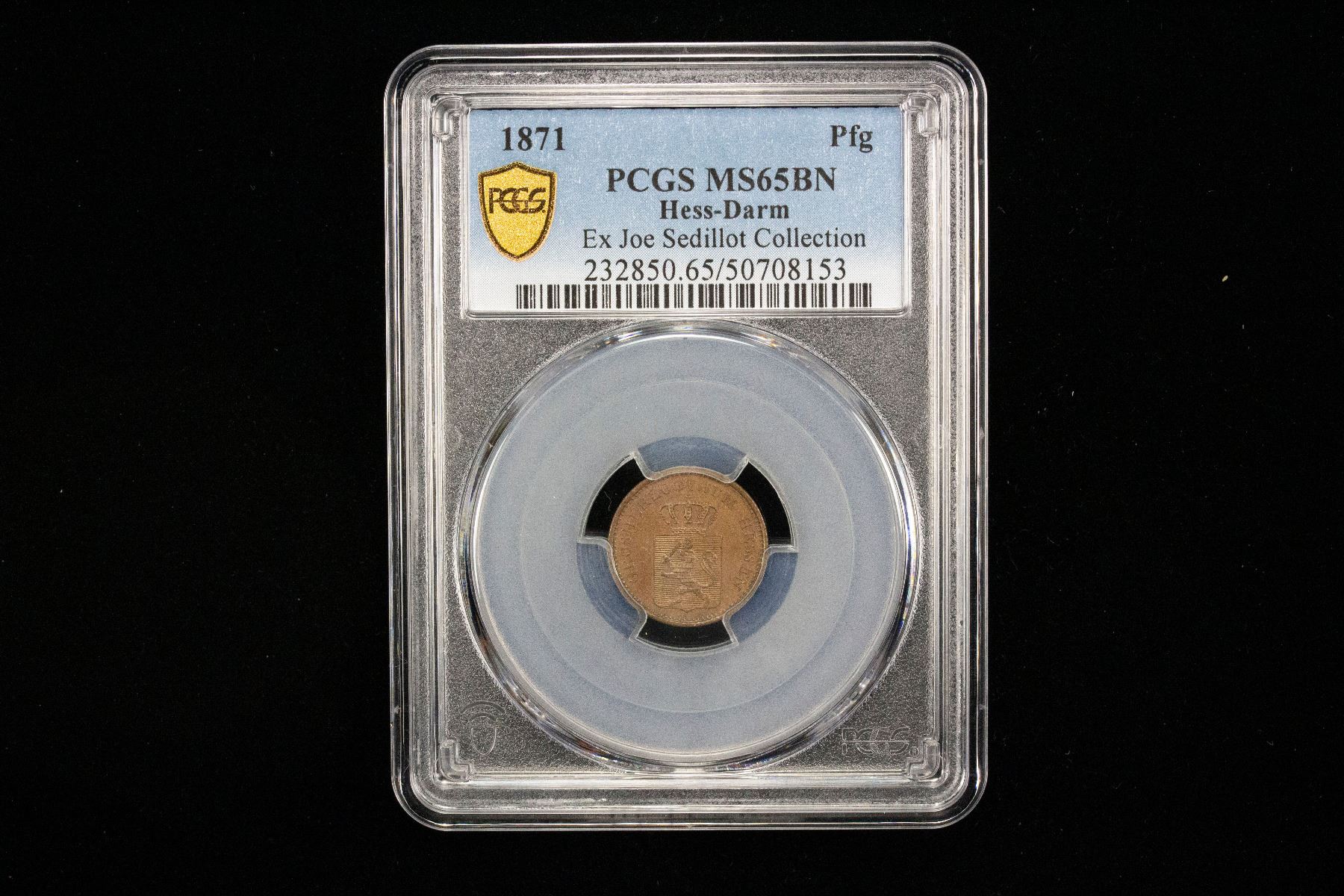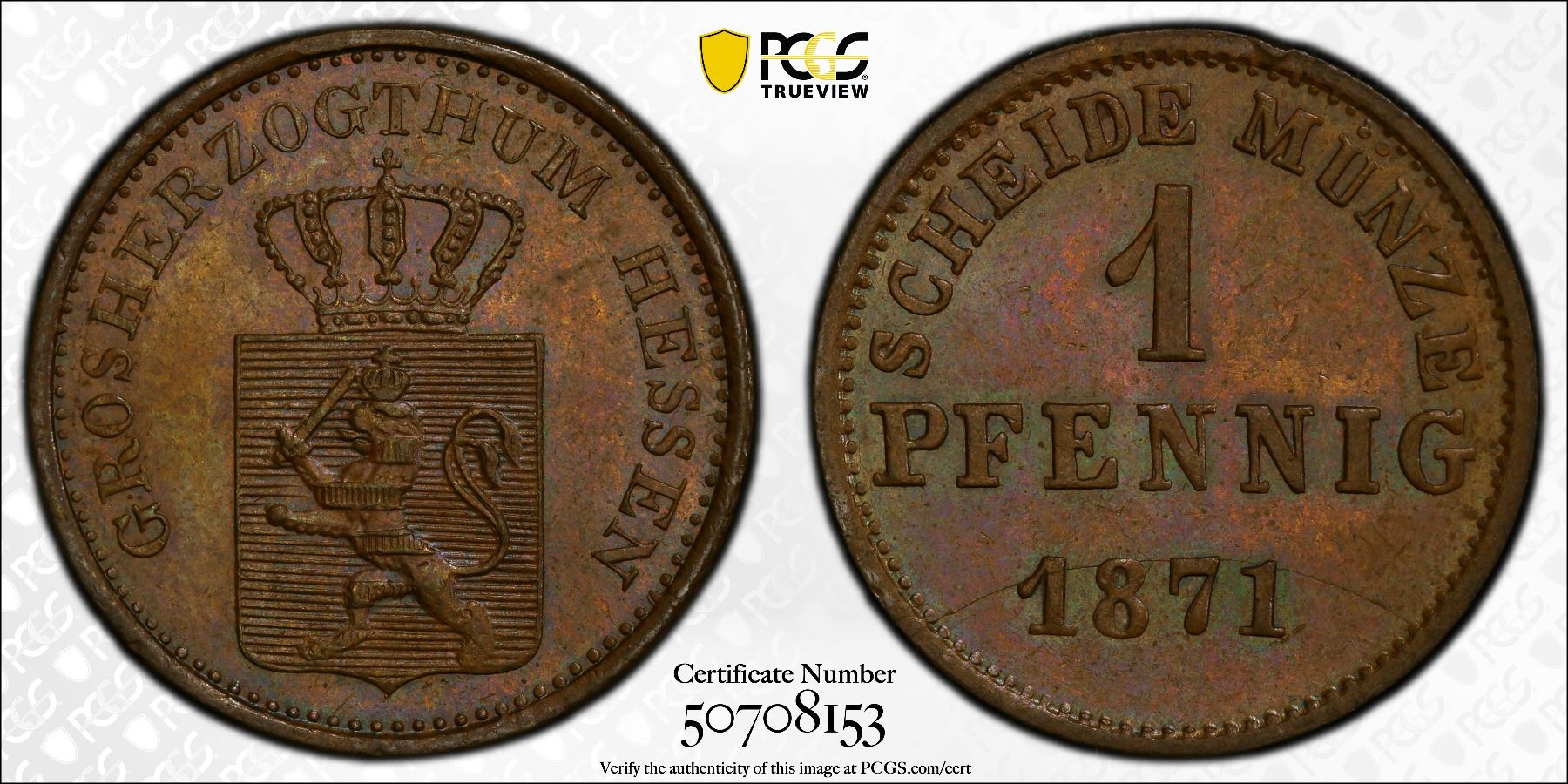 HESSE-DARMSTADT: Ludwig III, 1848-1877, AE pfennig, 1871, KM-337, Cr-151, a superb lustrous example! PCGS graded MS65 BN, ex Joe Sedillot Collection.