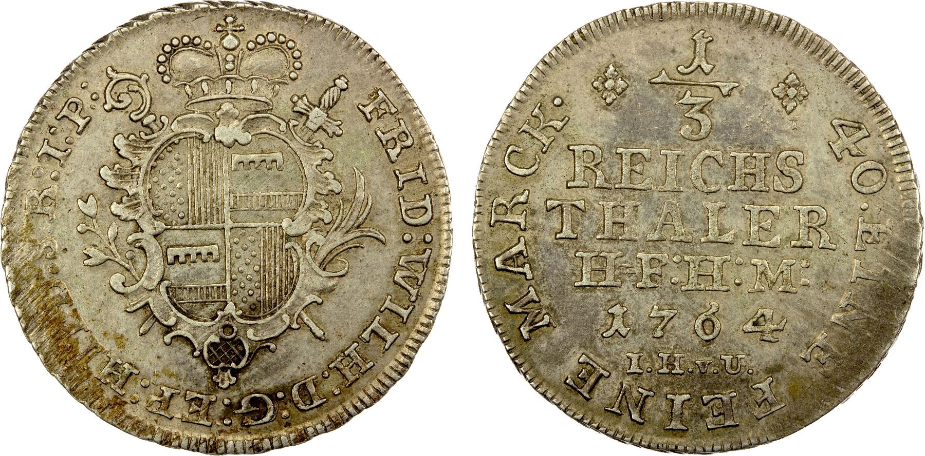 HILDESHEIM: Friedrich Wilhelm, Bishop, 1763-1789, AR 1/3 thaler, 1764, Choice XF