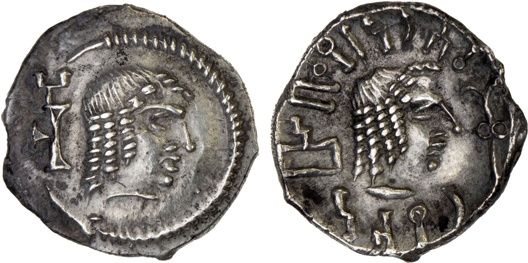 HIMYARITE: Tha'ran Ya'ub, ca. 175-215, AR unit (1.77g), Huth-449, male head right, monogram to left // male head right, monogram to left, "scepter" monogram to right, T'RN Y'B above, RYDN below, VF-XF.