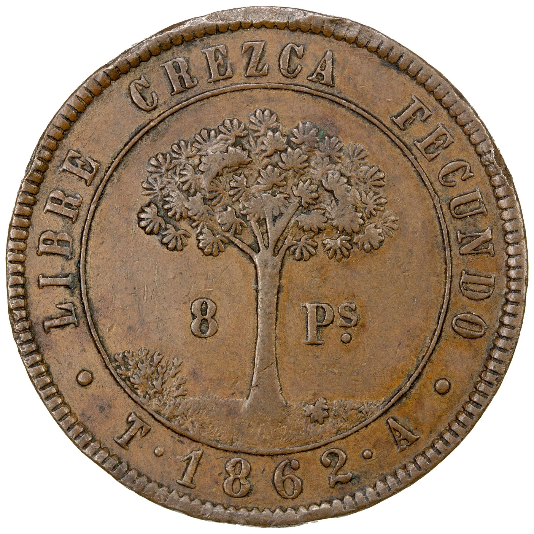 HONDURAS: State of Honduras, AE 8 pesos, 1862-T, KM-27, assayer A, provisional issue, some small rim bumps, one-year type, Choice VF, ex Joe Sedillot Collection.
