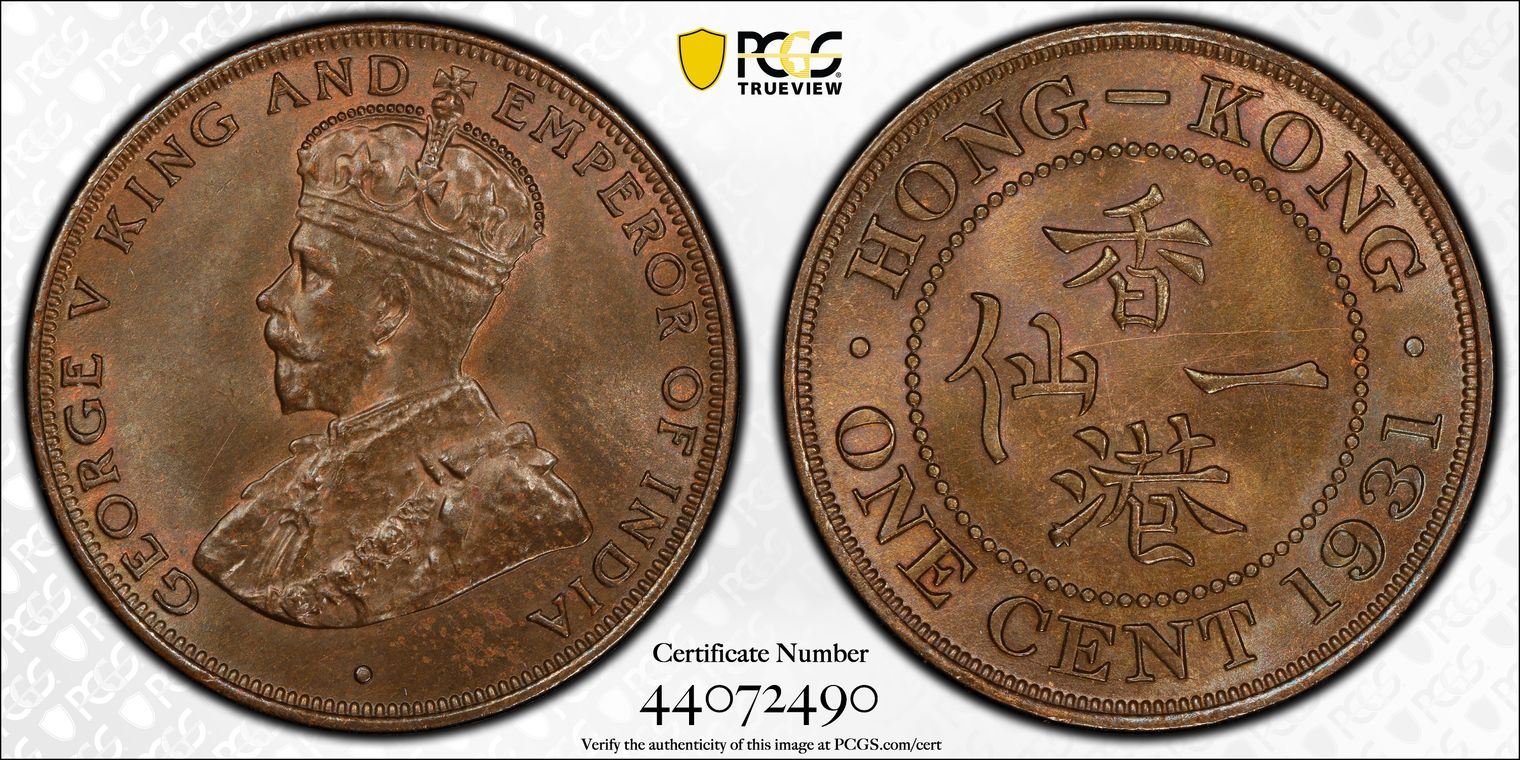 HONG KONG: George V, 1910-1936, AE cent, 1931, KM-17, a superb glossy brown lustrous example! PCGS graded MS65 BN.