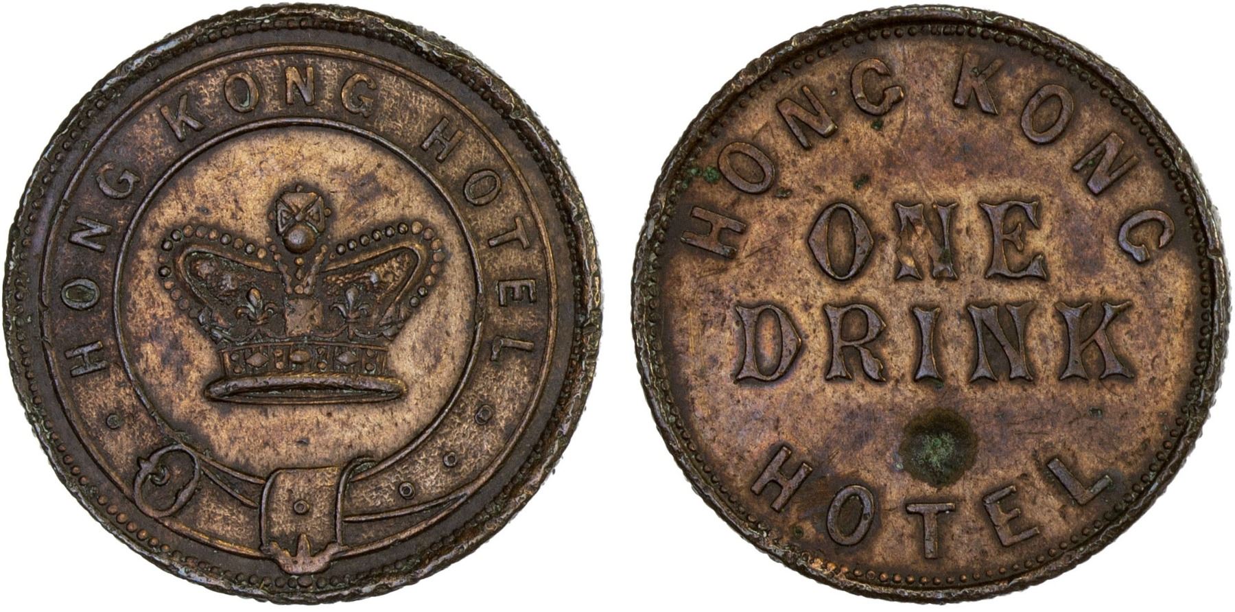 HONG KONG: AE token, ND (1884), struck at the Heaton Mint in Birmingham for the Hong Kong Hotel, good for one drink, lustrous, faint scratches and a spot of discoloration on reverse, Choice AU.