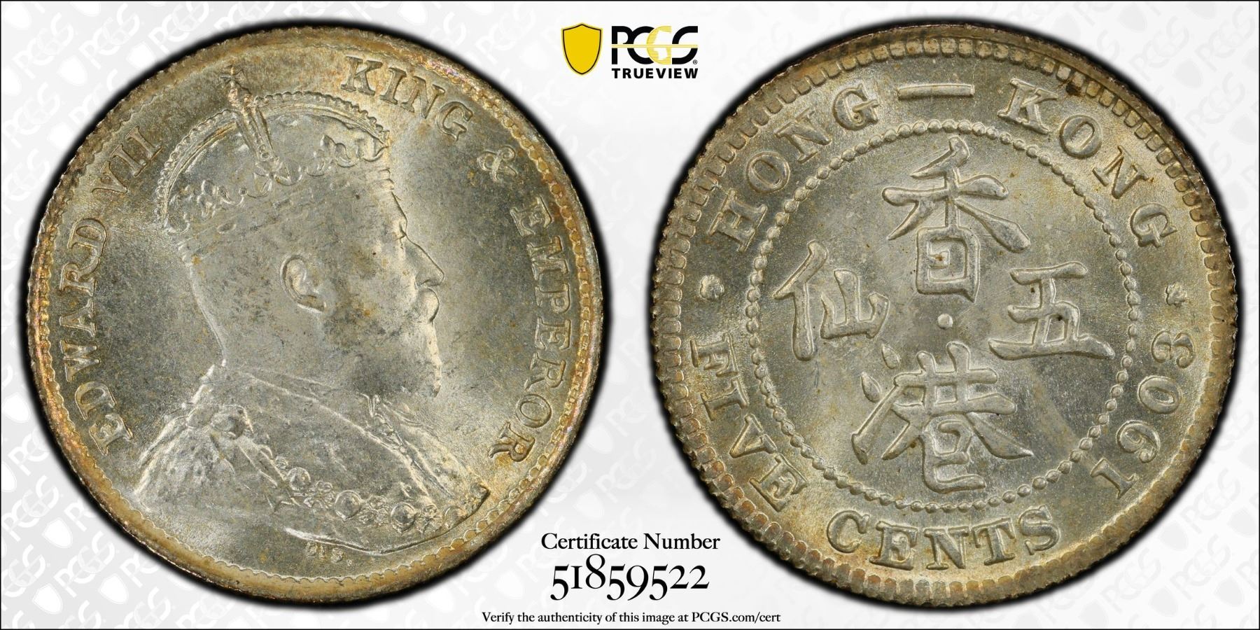 HONG KONG: Edward VII, 1901-1910, AR 5 cents, 1903, PCGS MS66