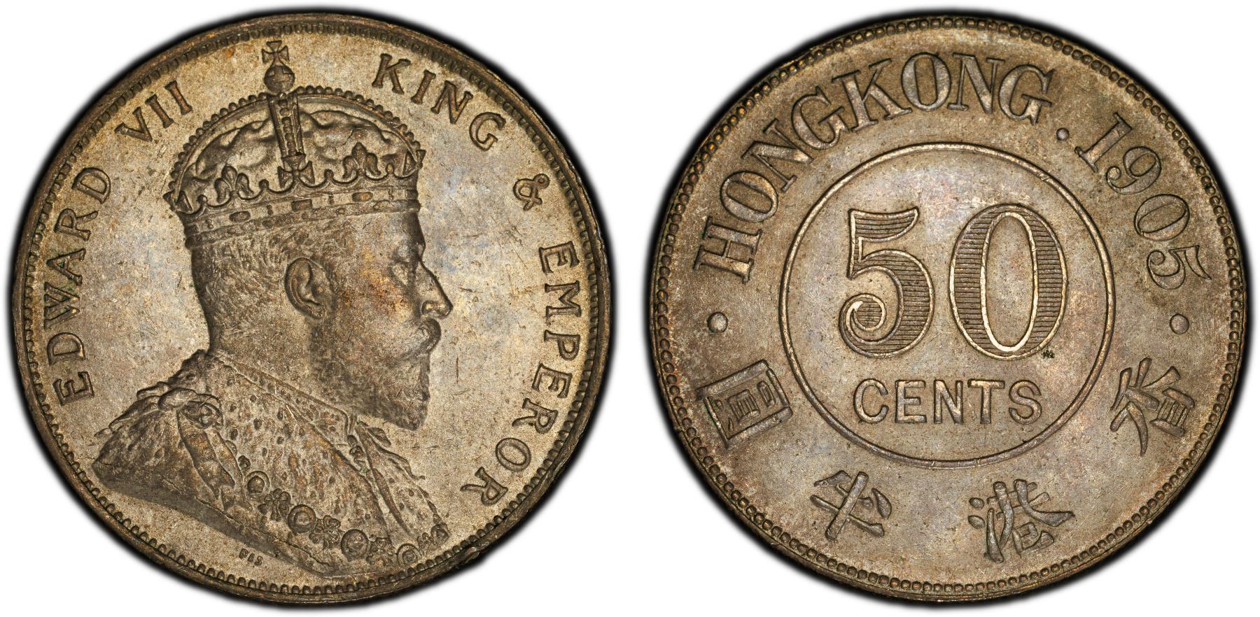 HONG KONG: Edward VII, 1901-1910, AR 50 cents, 1905, KM-15, a pleasing lustrous mint state example, PCGS graded MS62.