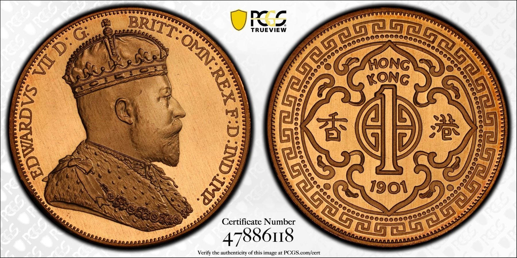 HONG KONG: Fantasy Issues, 1 dollar, "1901", KM-X3a, INA Retro Fantasy Edward VII type, struck in bronze, International Numismatic Agency(INA) issue, PCGS graded PF69 Cameo. The International Numismatic Agency (INA) struck high quality fantasy British crown coins primarily around 2000–2001, with additional, subsequent strikings reported in 2007 and 2008. These coins are often referred to as "INA Retro Fantasy Issues."