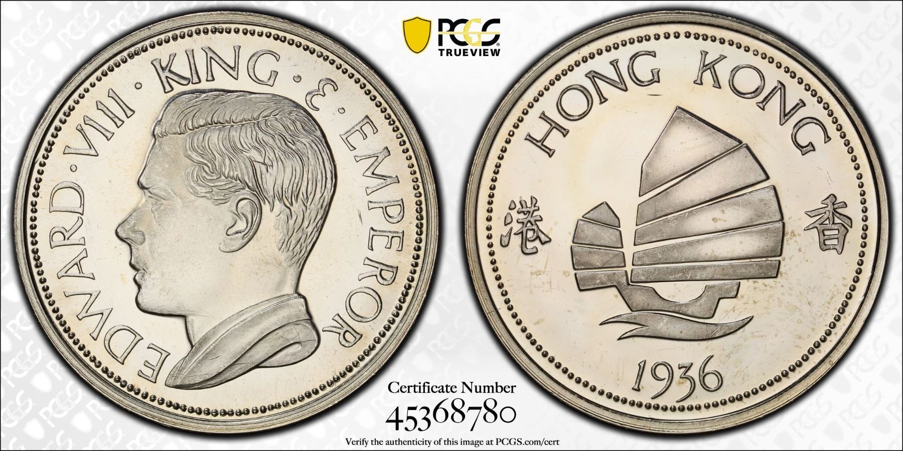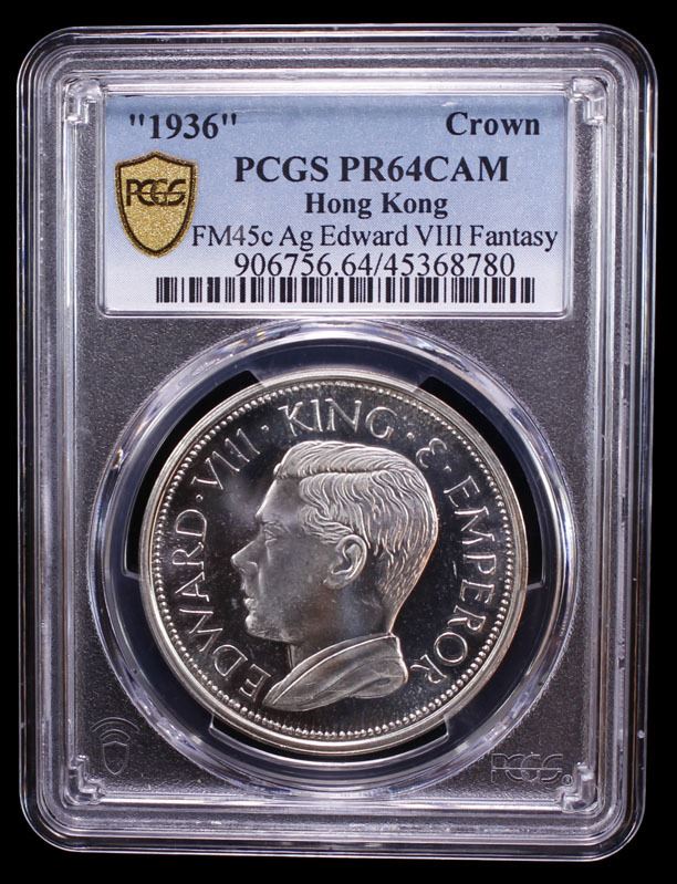 HONG KONG: Fantasy Issues, 1 dollar, "1936", Fantasy Edward VII type, struck in silver, Richard Lobel issue, PCGS PF64 Cameo.