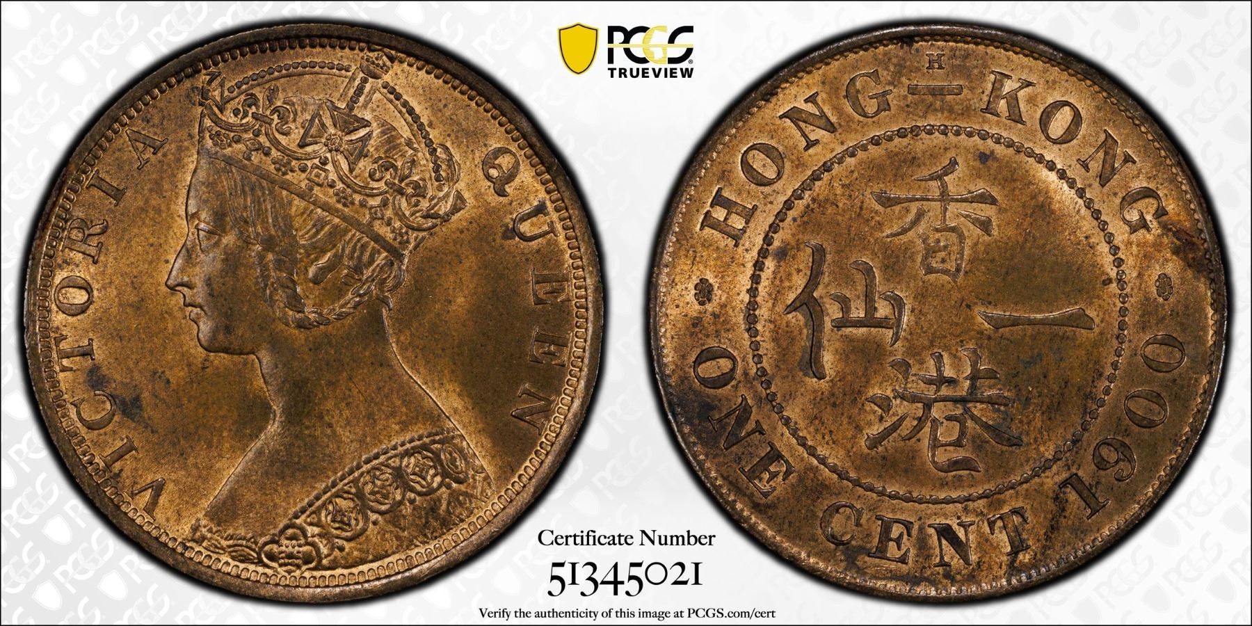 HONG KONG: Victoria, 1841-1901, AE cent, 1900-H, KM-4.3, a lovely lustrous mint state example! PCGS graded MS63 RB.
