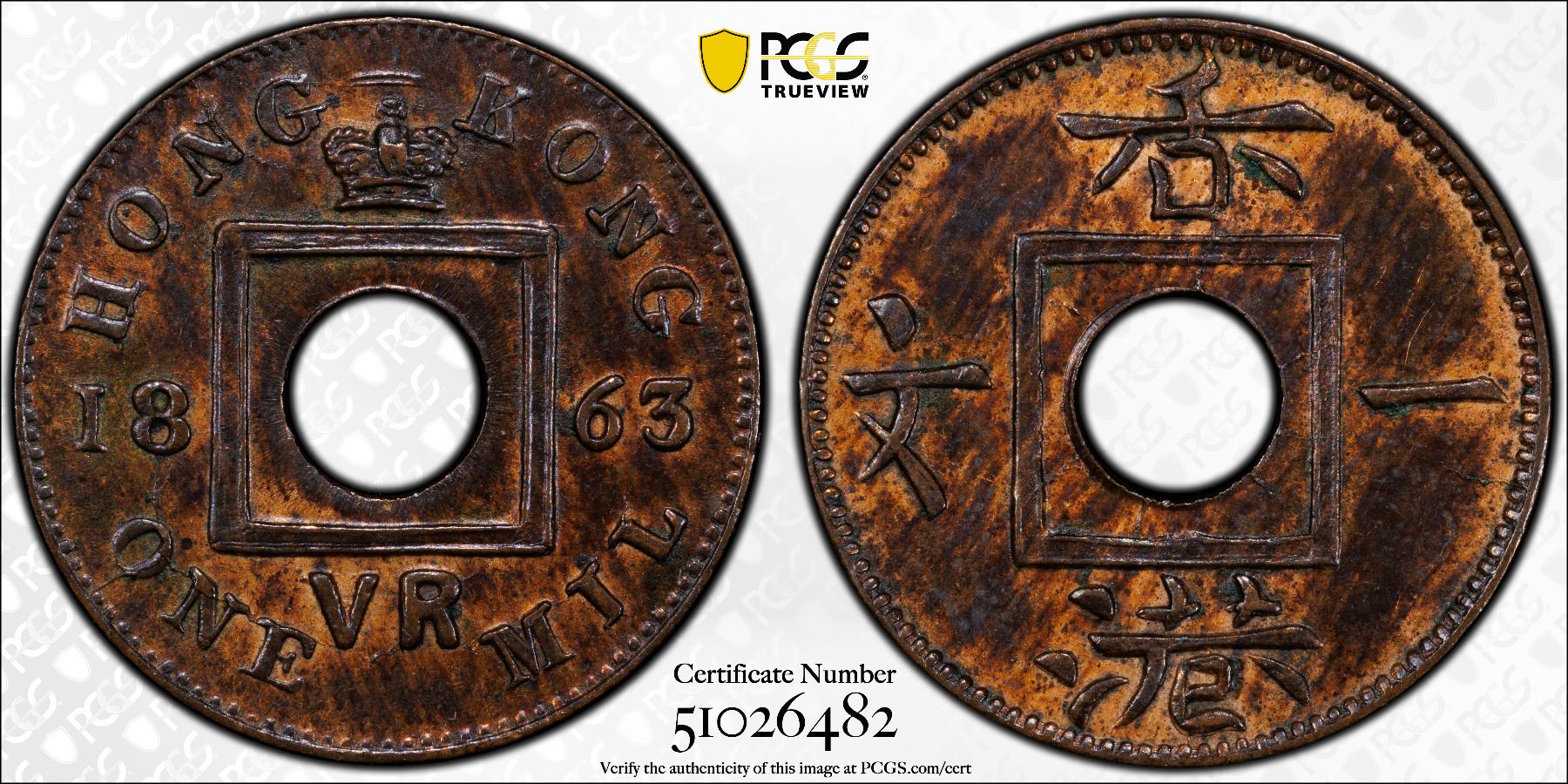 HONG KONG: Victoria, 1841-1901, AE mil, 1863, KM-1, a pleasing mint state example, PCGS graded MS62 BN, ex Almer H. Orr III Collection.
