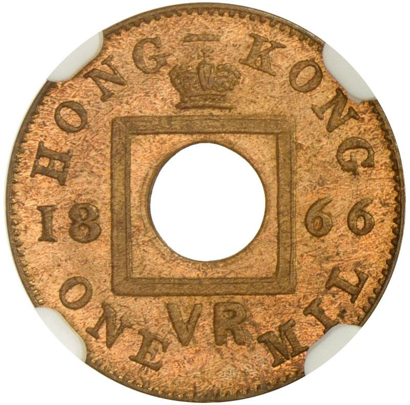 HONG KONG: Victoria, 1841-1901, AE mil, 1866, KM-3, with hyphen, NGC graded MS65 RB, ex Wéiduolìya Collection.