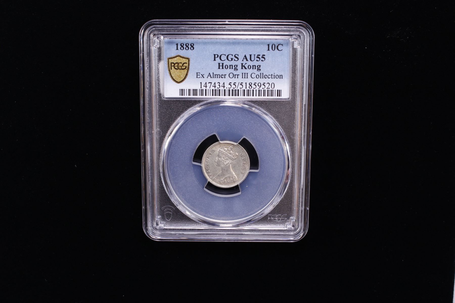HONG KONG: Victoria, 1841-1901, AR 10 cents, 1888, KM-6, PCGS graded AU55, ex Almer H. Orr III Collection.