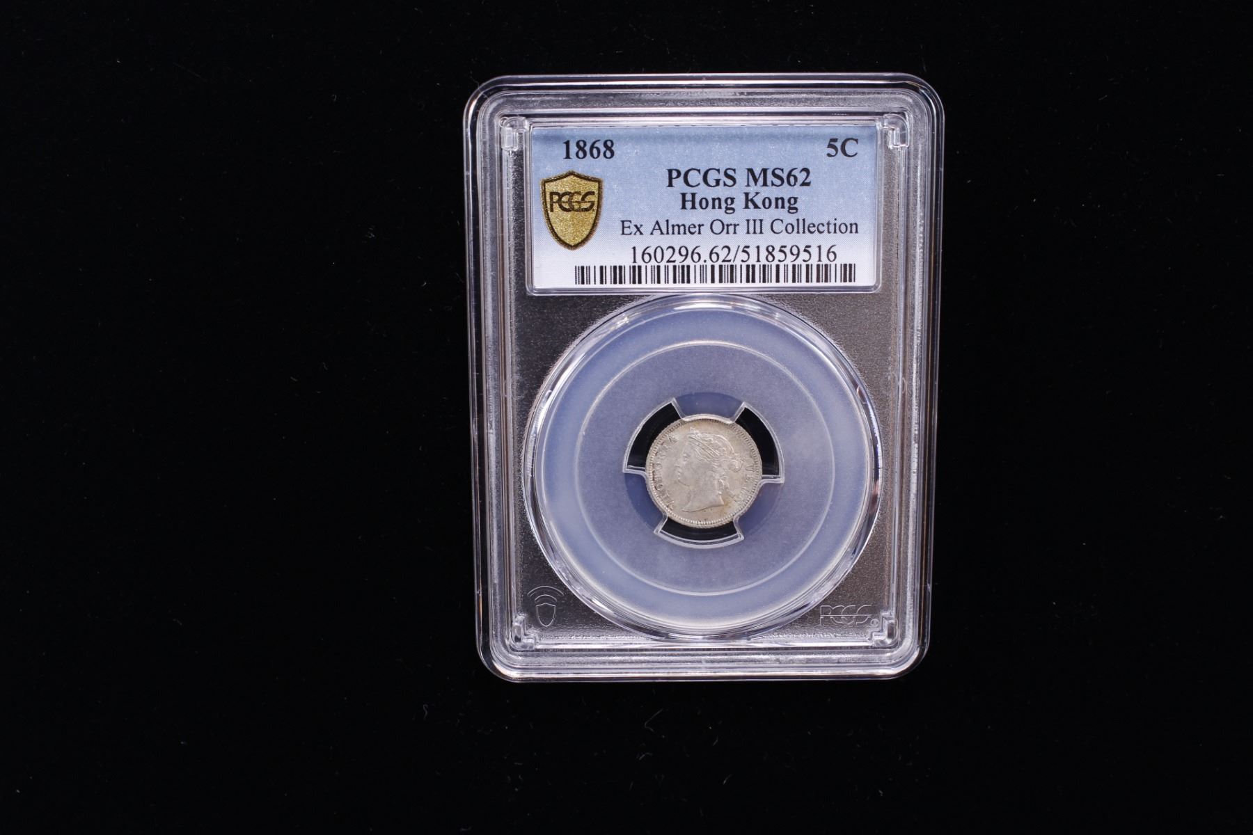 HONG KONG: Victoria, 1841-1901, AR 5 cents, 1868, KM-5, an attractive example, PCGS graded MS62, ex Almer H. Orr III Collection.