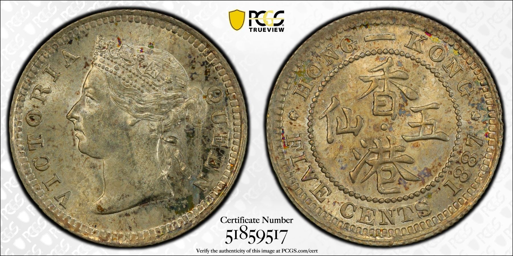 HONG KONG: Victoria, 1841-1901, AR 5 cents, 1887, PCGS MS63