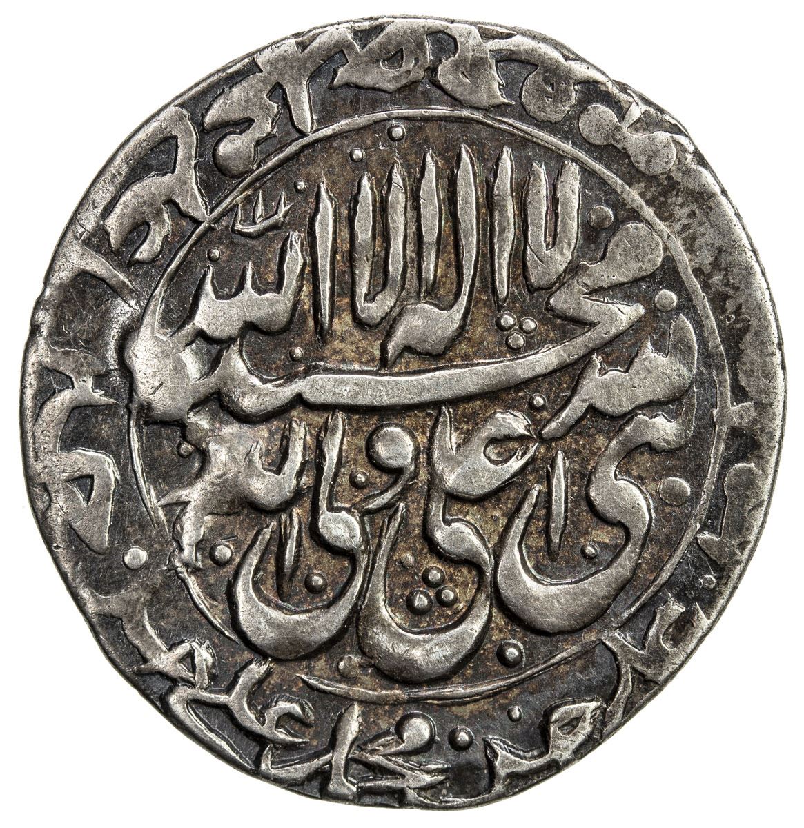 HOTAKI: Azad Khan, 1750-1757, AR abbasi (4.50g), Qazwin, AH1167, A-2730, Shi 'ite kalima reverse, with the 12 Imams cited in the surrounding margin, lovely strike, beautiful toning, VF-EF, R.