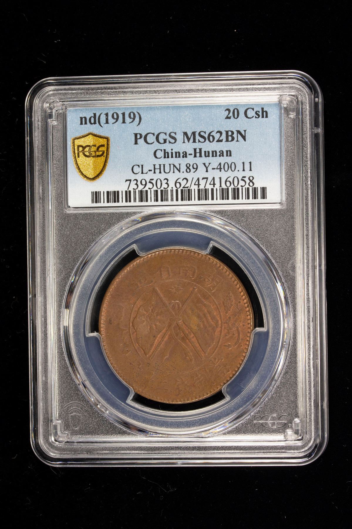 HUNAN: Republic, AE 20 cash, ND (1919), Y-400, CL-HUN.89, lightly lustrous with some original red color, PCGS graded MS62 BN.