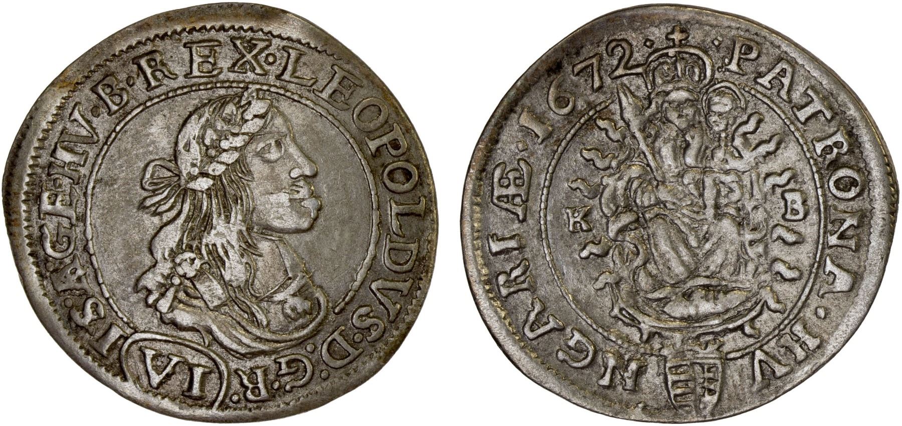 HUNGARY: AR 6 krajczar, Kremnitz, 1672, attractive VF