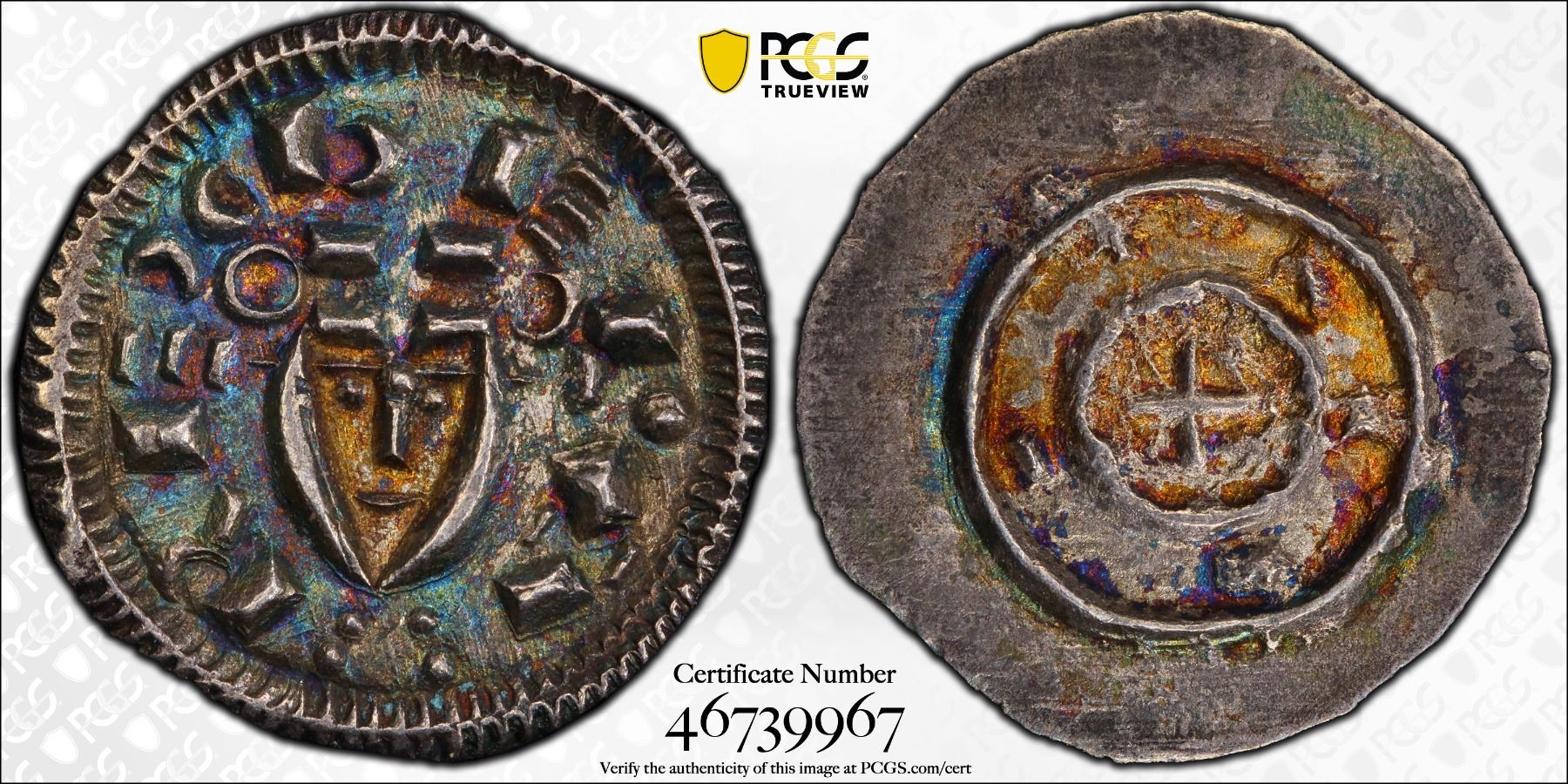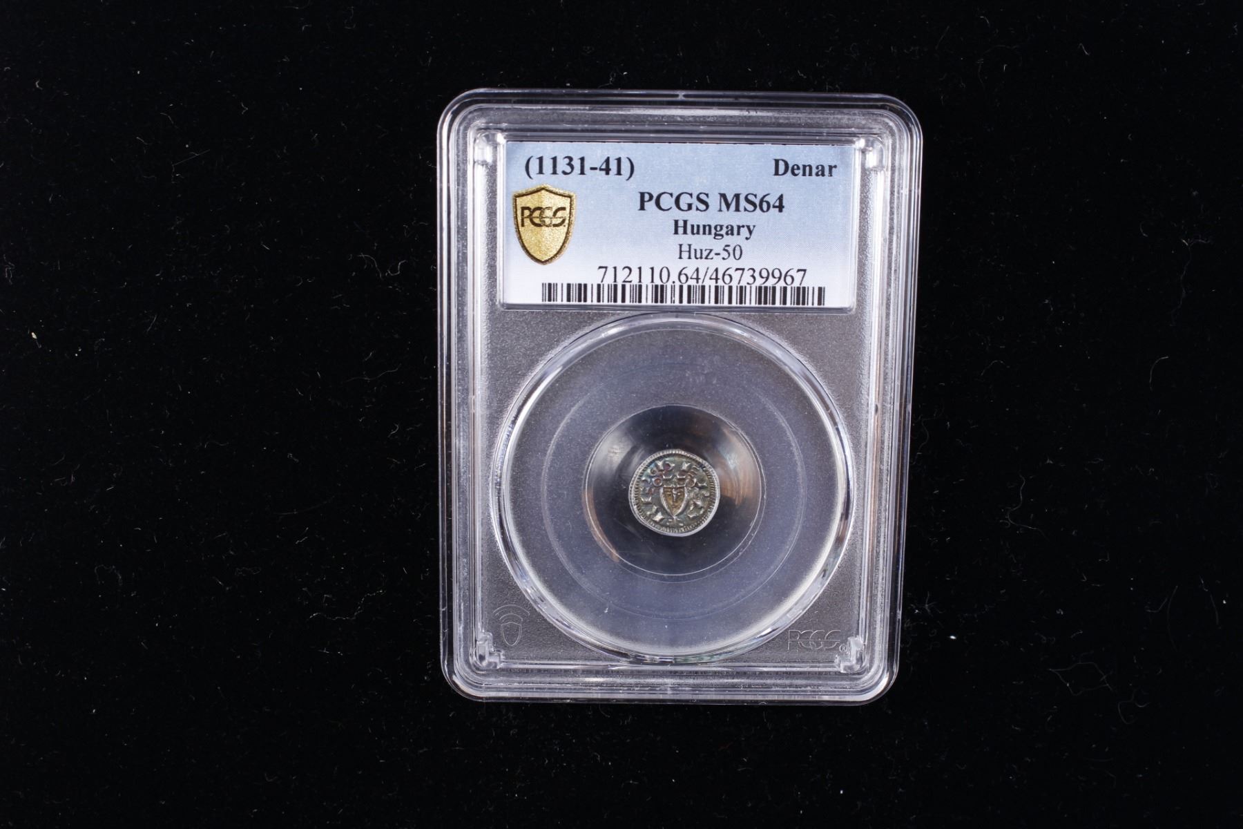 HUNGARY: Bela II, 1131-1141, AR denar, ND, Huszár-50, colorfully toned, well struck, PCGS graded MS64.