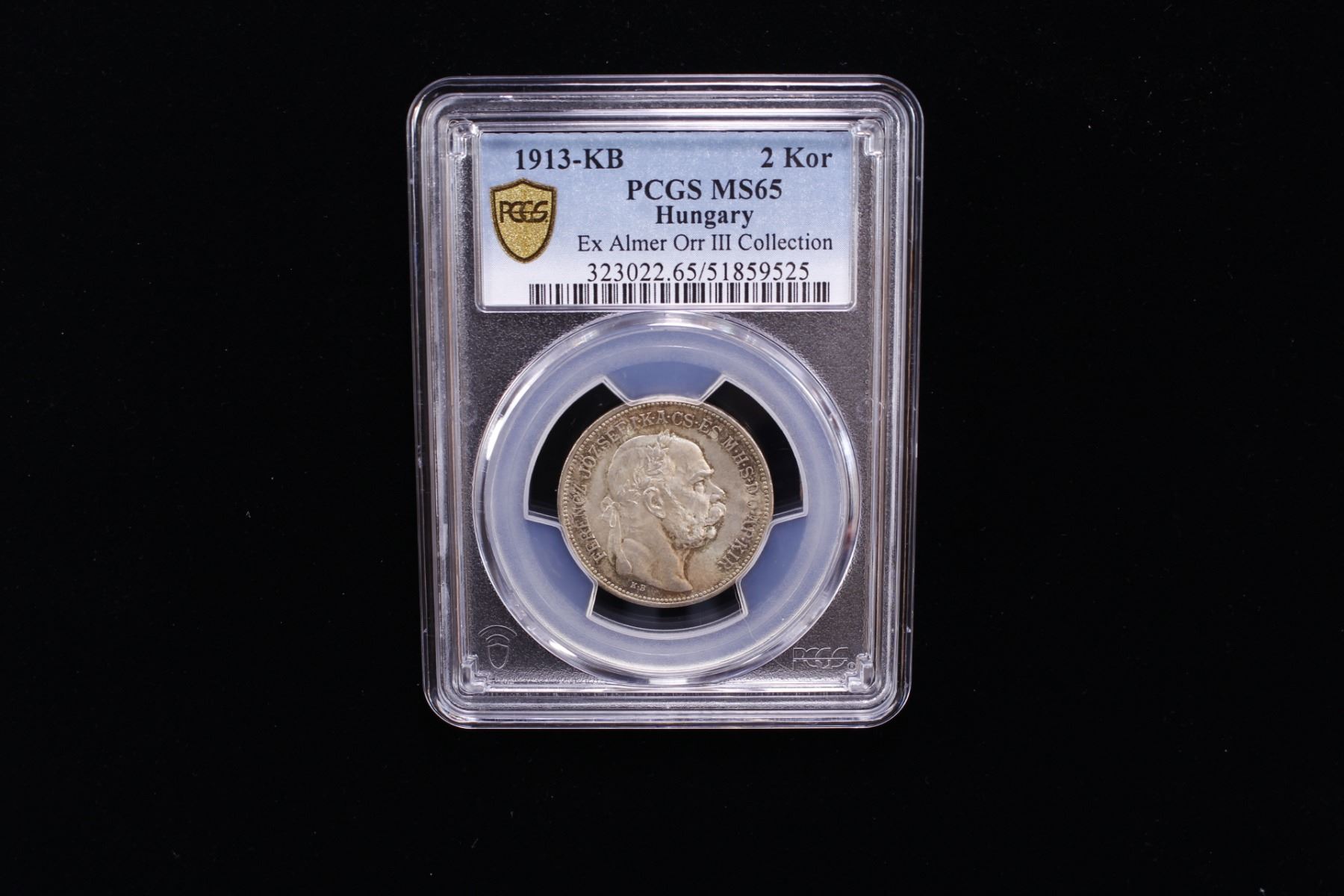 HUNGARY: Franz Joseph I, 1848-1916, AR 2 corona, 1913, KM-493, a superb example, PCGS graded MS65, ex Almer H. Orr III Collection.