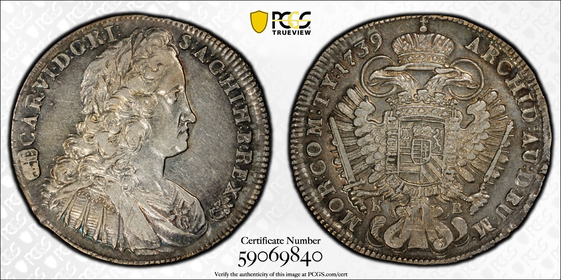 HUNGARY: Karl III, 1711-1740, AR 1/2 thaler, Kremnitz, 1739, PCGS AU53