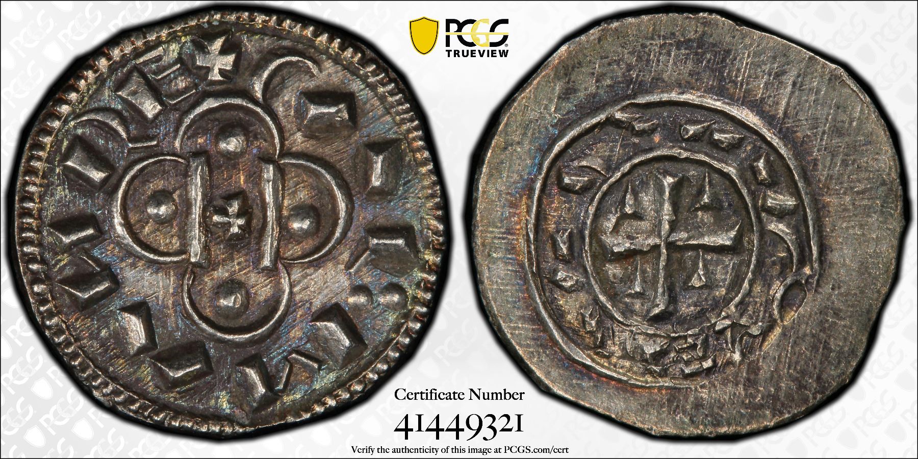 HUNGARY: Koloman, 1095-1116, AR denar, ND, Huszár-41, lightly toned with underlying luster, PCGS graded MS63.