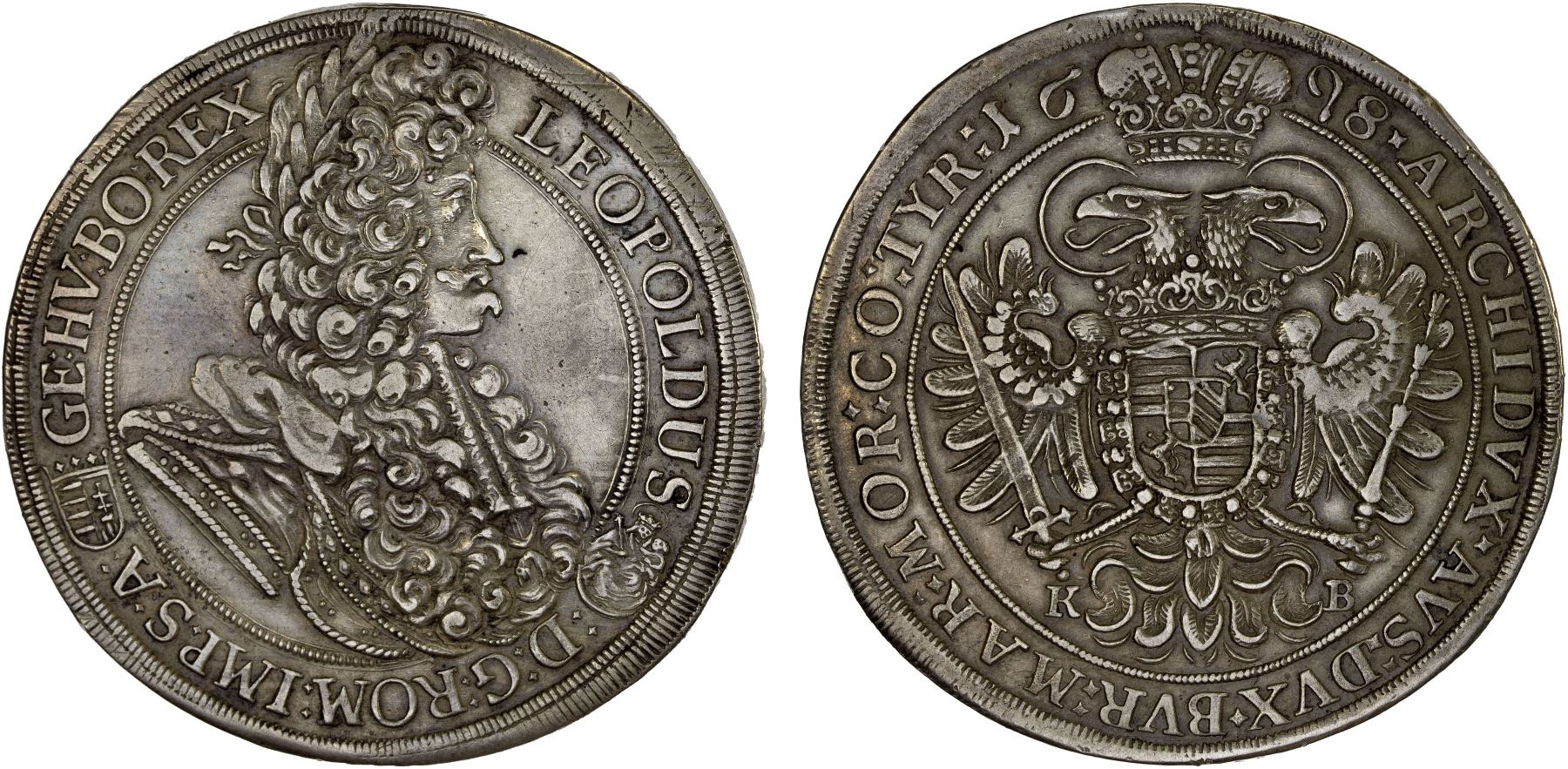 HUNGARY: Leopold I, 1657-1705, AR thaler (28.67g), Kremnitz, 1698-KB, Choice VF