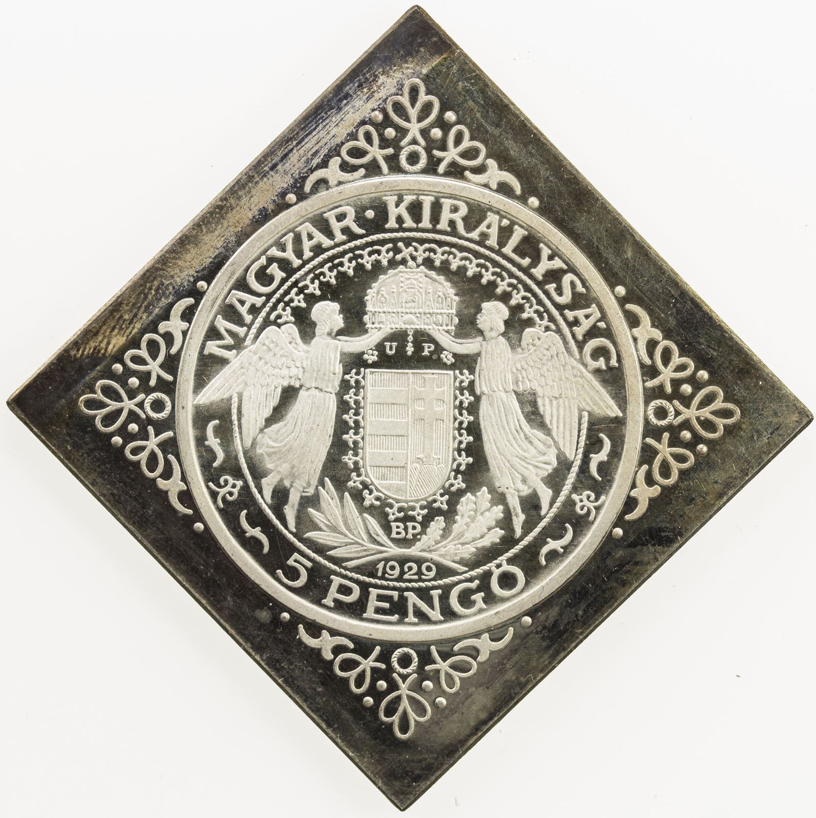 HUNGARY: Miklos Horthy, regent, 1920-1944, klippe AR 5 pengo, 1929-BP. PF