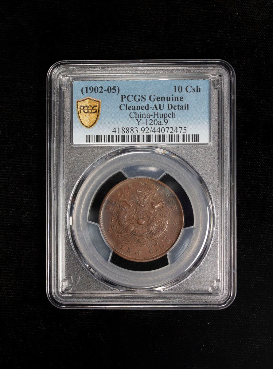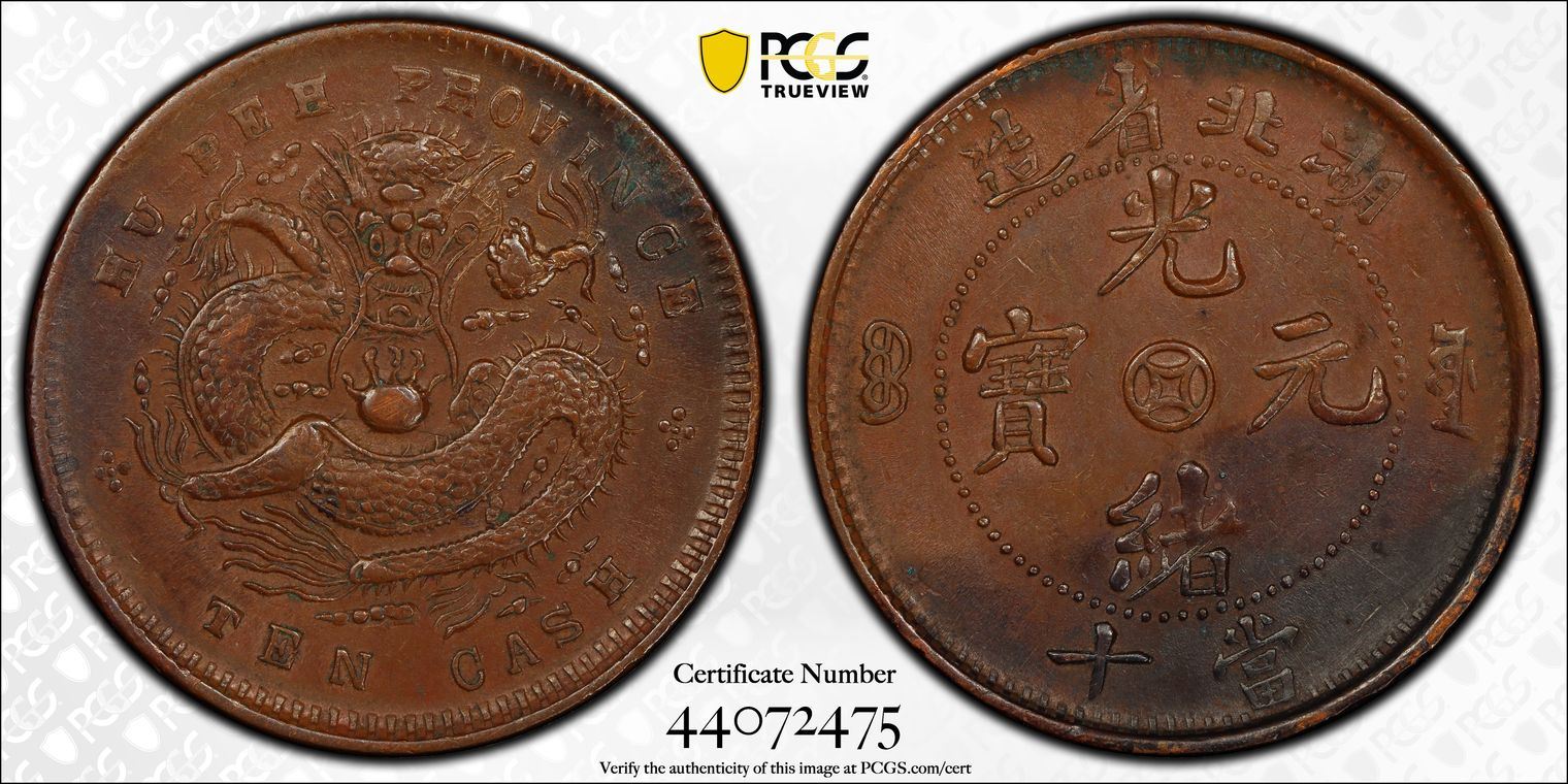 HUPEH: Kuang Hsu, 1875-1908, AE 10 cash, ND (1902-05), Y-120.09, inverted A variety, dies rotated 45, cleaned, PCGS graded About Unc details.