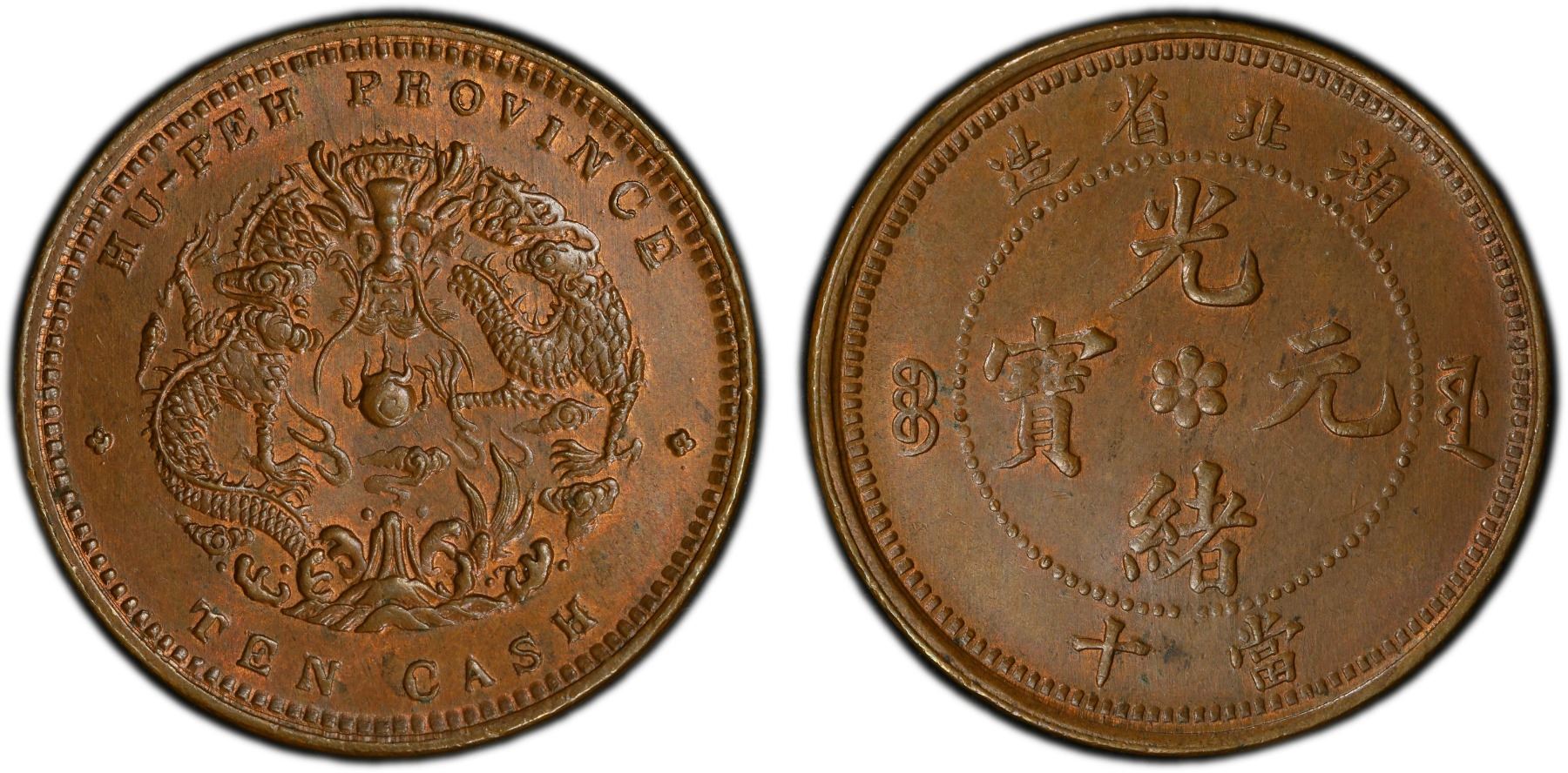 HUPEH: Kuang Hsu, 1875-1908, AE 10 cash, ND (1902-05), Y-122.4, superb surfaces, lovely and lustrous, PCGS graded MS64 BN. Tied with only one other example for highest graded at PCGS.