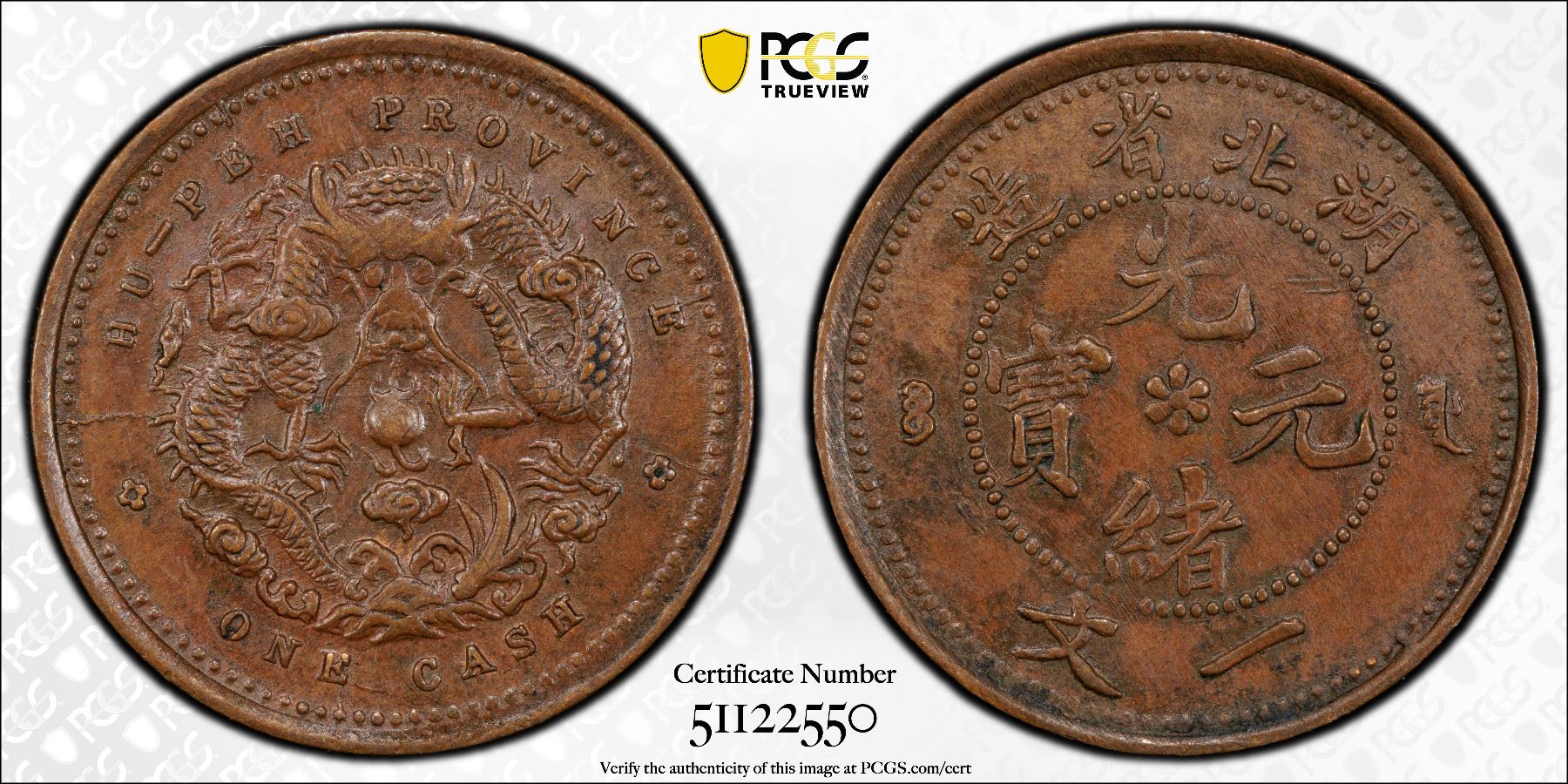 HUPEH: Kuang Hsu, 1875-1908, AE cash, CD1906, PCGS MS62 BN