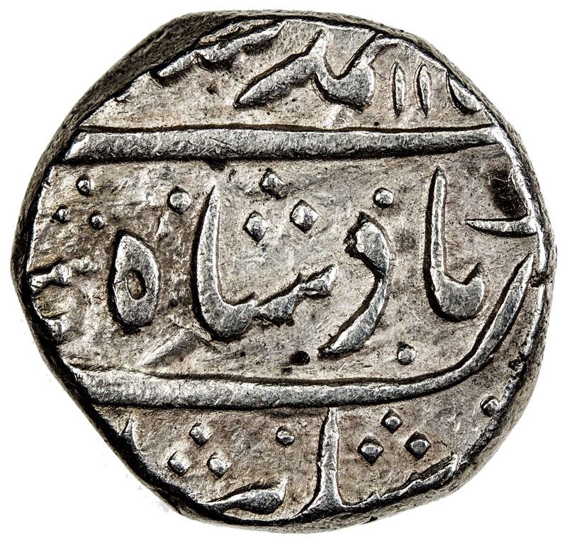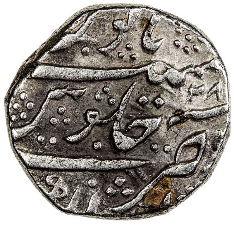 HYDERABAD: IMTIYAZGARH: AR rupee (11.26g), Imtiyazgarh, AH115x year 28, KM-436.27, in the name of Muhammad Shah, attractive VF, ex Paul Stevens Collection.