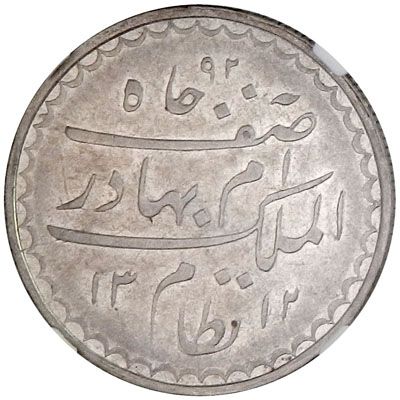HYDERABAD: Mir Mahbub Ali Khan, 1869-1911, AR rupee, Farkhanda Bunyad, AH1312 year 28, Y-32, NGC graded AU58.
