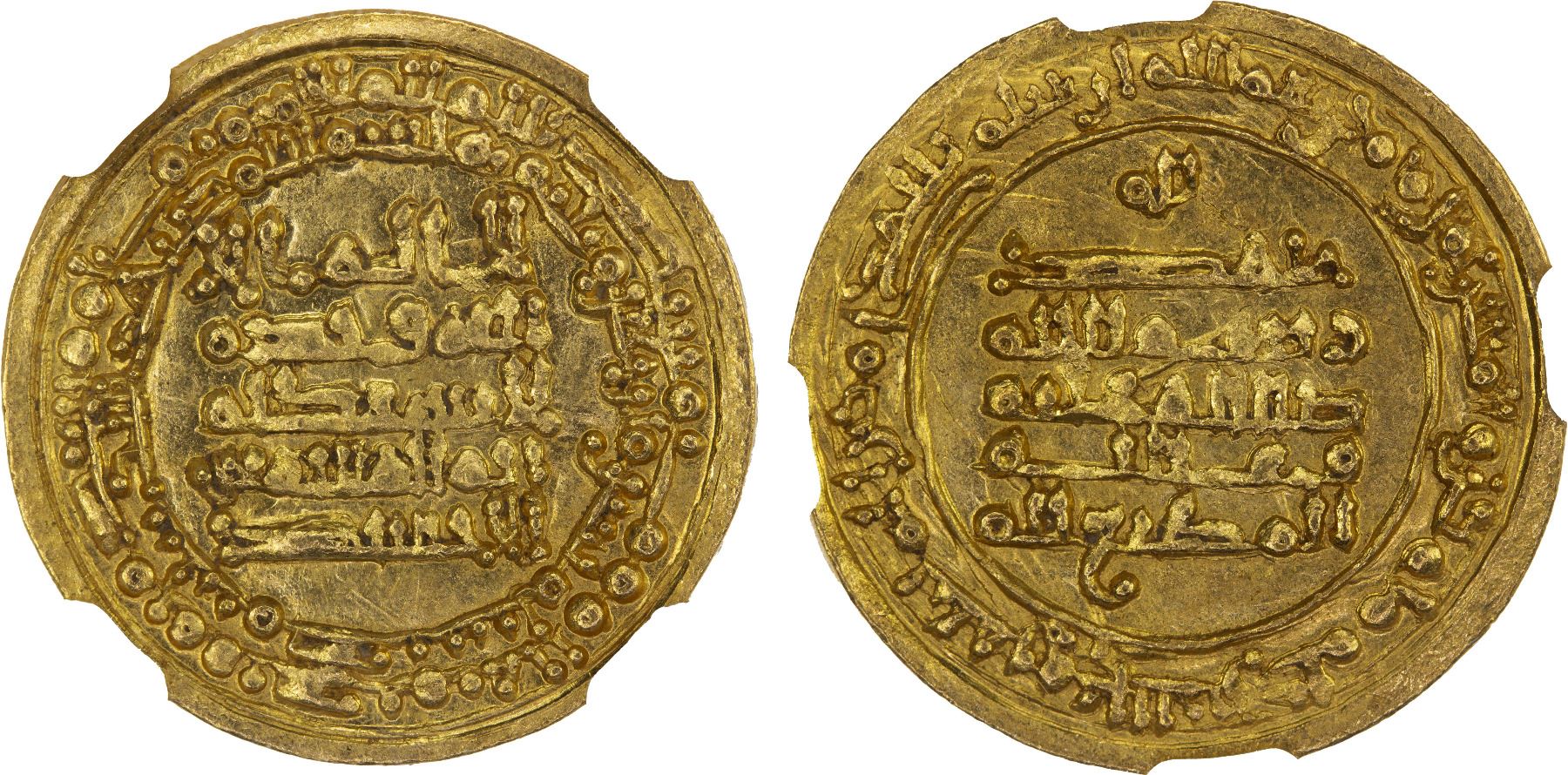 IKHSHIDID: Abu'l-Qasim, 946-961, AV dinar (4.75g), Misr, AH342, A-676, a lustrous mint state example! NGC graded MS64.