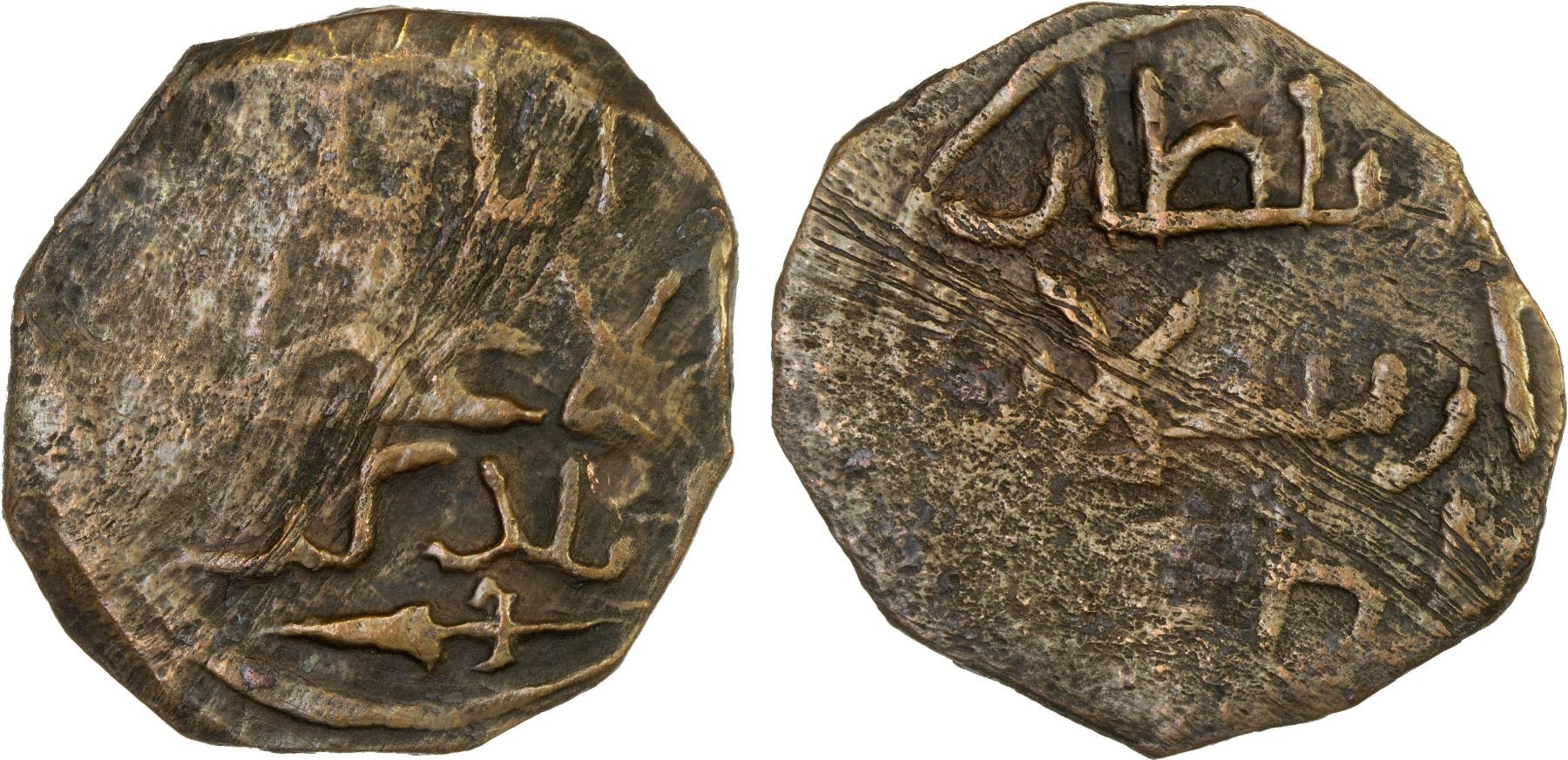 ILDEGIZID: Ildegiz, 1137-1175, AE fals (6.19g), NM, ND, A-1899.3, Kouym-9B, citing the Great Seljuq overlord Arslan, threatening sword below obverse field, pointing left, VF, R.
