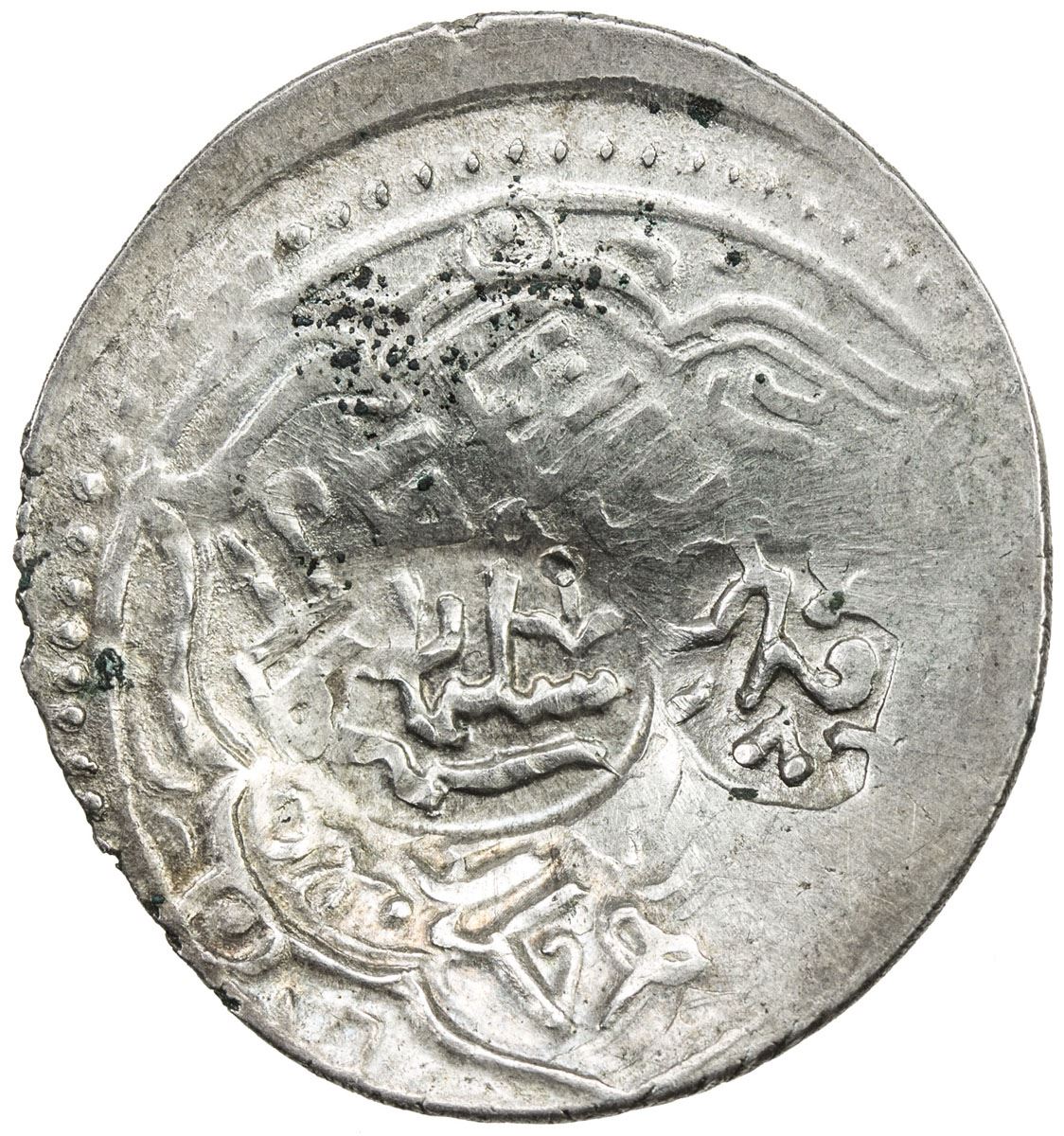 ILKHAN: Abu Sa'id, 1316-1335, AR dirham (1.92g), A-2197, type B, Anatolian issue with hopelessly blundered mint & date, countermarked at two cities, Akshehir and Sulaymanshehir, EF, RR, ex Christian Rasmussen Collection. The countermarks were likely added by the Beys of Alanya.