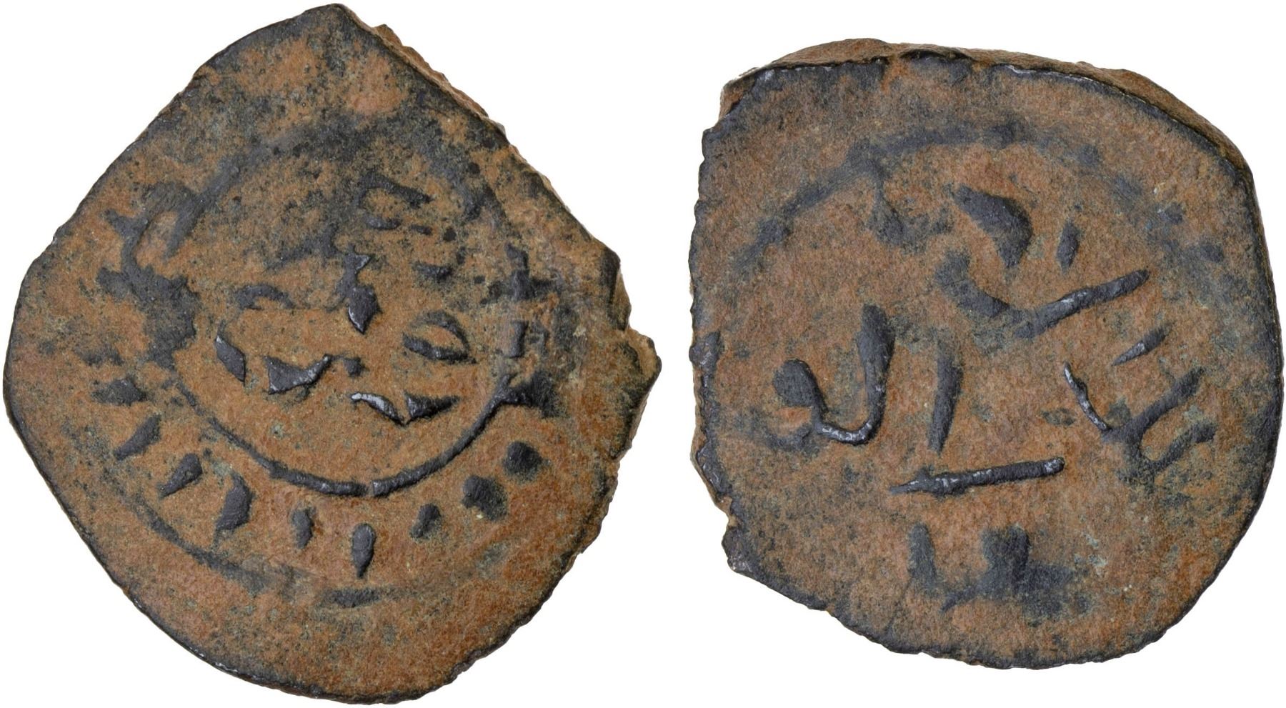 ILKHAN: Hulagu, 1256-1265, AE fals (1.94g), A-2125.5, SNAT-IVc:155/156, sunface // malik al-ard / hulagu, "king of the Earth, Hulagu"; average strike, VF, R. Struck at Hims during the few months of Ilkhan occupation of Syria.