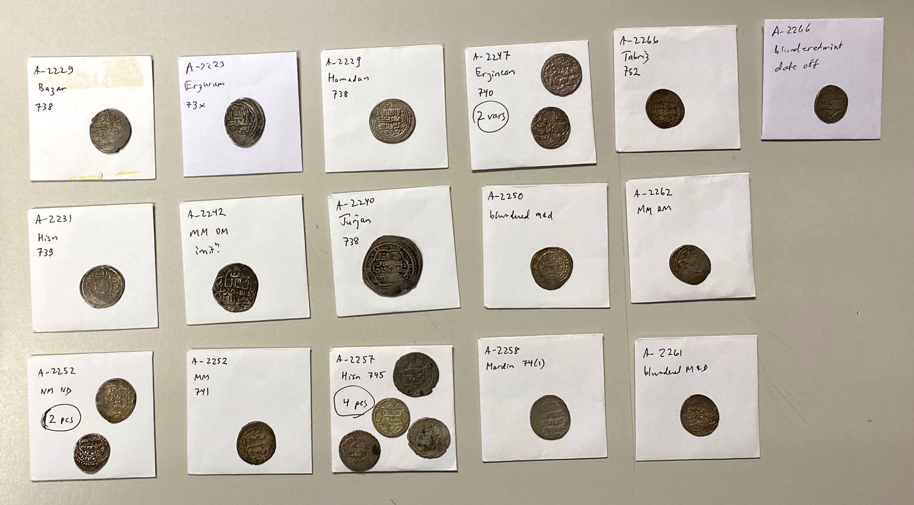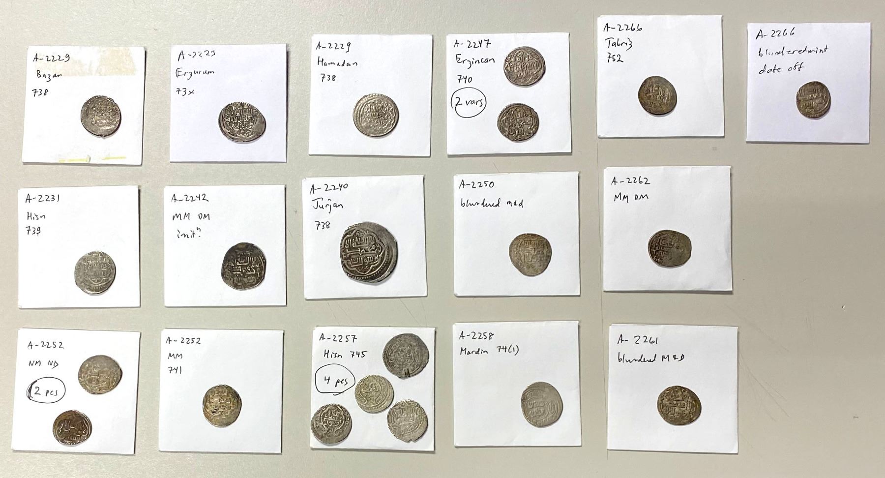 ILKHAN: LOT of 21 silver coins of the later rulers, all double dirhams unless noted: Muhammad (3 pcs, with Hamadan, Bazar, and Erzurum mints); Sati Beg (1, Hisn); Taghay Timur (2, Jurjan six dirham denomination and mint off); Jihan Timur (2, both Erzincan AH740 and both choice VF); Sulayman (9, Hisn, Mardin, blundered mints); and Anushiravan (4, one of Tabriz, the rest with mint off or unclear); average circulated grades, many with some weakness; retail value $400, lot of 21 pieces, ex Dr. Dirk Löer Collection.