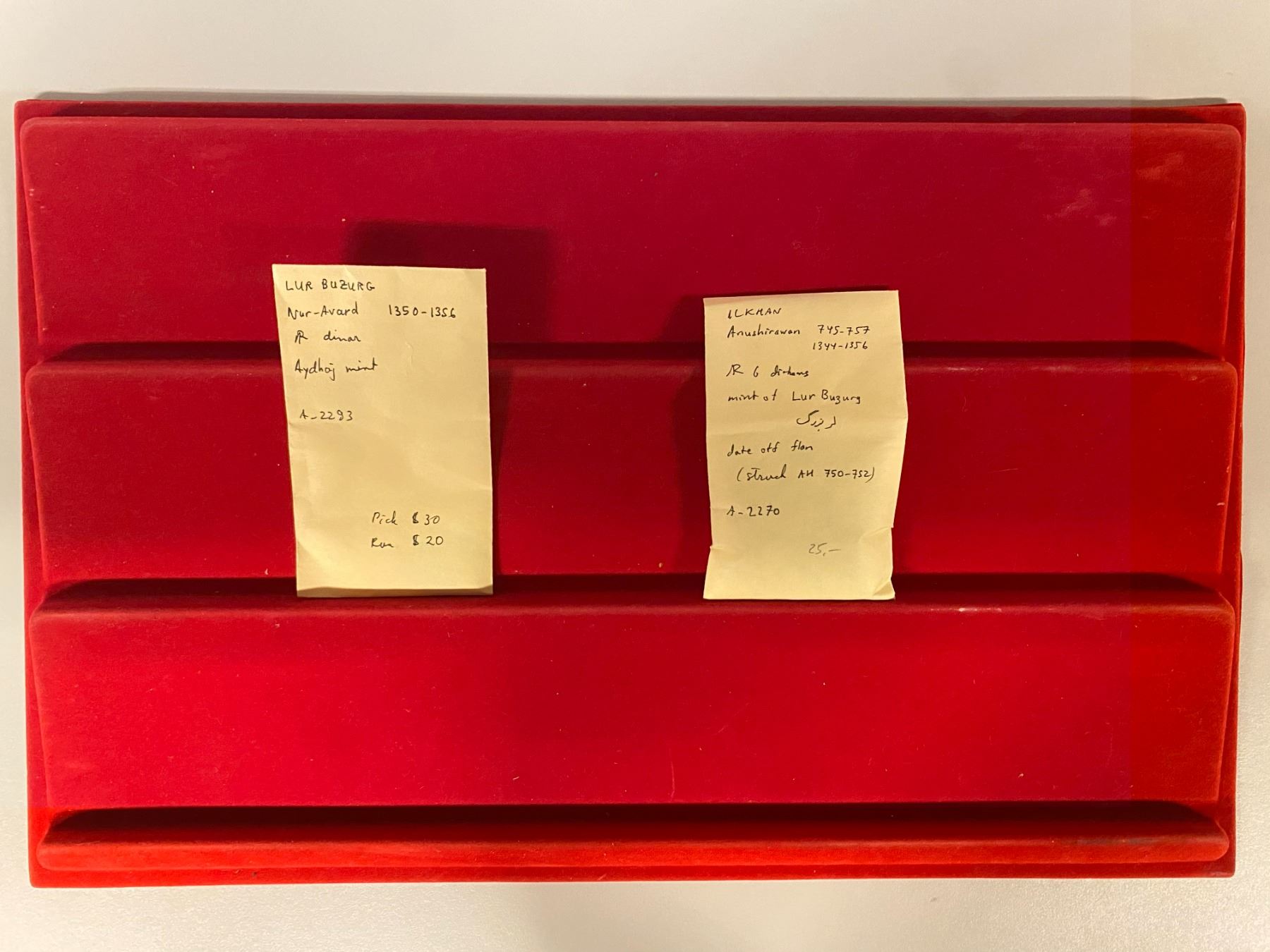 ILKHAN: LOT of 33 coins, group of ILKHANID:Anushiravan, 1344-1356, AR 6 dirhams, Lur Buzurg (Southern Luristan), date missing, type UA with legends in inner circle // square (30 coins) and ATABEGS OF LUR BUZURG (HAZARASPID): temp. Nur-Award, 1350-1356, AR dinar. Aydhaj mint, date missing, A-2293 type D (3 coins), average quality for type, retail value $750, group of 29 coins.