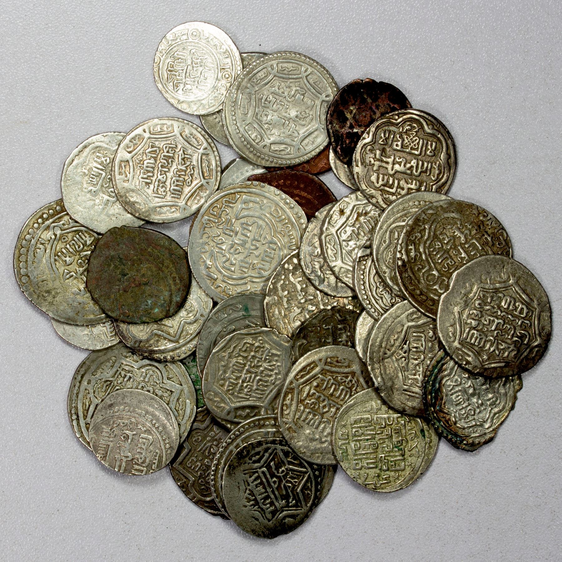 ILKHAN: LOT of 37 silver and 5 copper coins, including Ilkhan: Abu Sa'id (23 pieces, probably all double dirhams, including mints of Basra, Bazar, Erzurum, Isfahan, Maragha, Shiraz, Sultaniya, and Tabriz); Muhammad Khan (1, Hamadan); Taghay Timur (2, including one of Baghdad); Sulayman (3, including one of Tabriz); and copper (5, low grade, little value); and Others: Eretnid (2), Jalayrid (1), Muzaffarid (2), Shaddadid (2), and Seljuq of Rum (1); viewing recommended, average circulated grades; retail value $600, lot of 42 pieces.