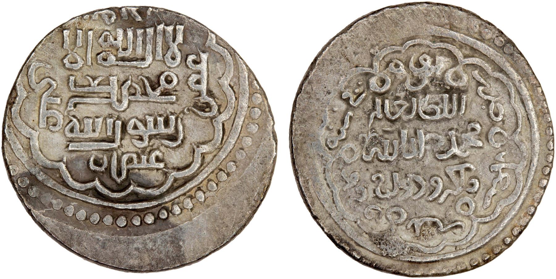 ILKHAN: Muhammad Khan, 1336-1338, AR 2 dirhams (2.27g), Aweh, AH738, A-2229, type B, very rare mint, VF-XF, RR, ex Ruud Schüttenhelm collection. According to Diler, the mint of Aweh was located near Qumm in west central Iran.