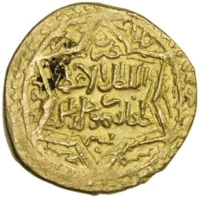 ILKHAN: Taghay Timur, 1336-1353, AV dinar (6.69g), Tustar, AH743, A-L2233, type IB (pointed hexafoil / plain circle), Tustar is the modern city Shushtar in Khuzestan province of Iran, Fine to VF, RRR. This type has previously been reported only for the mint of Baghdad.