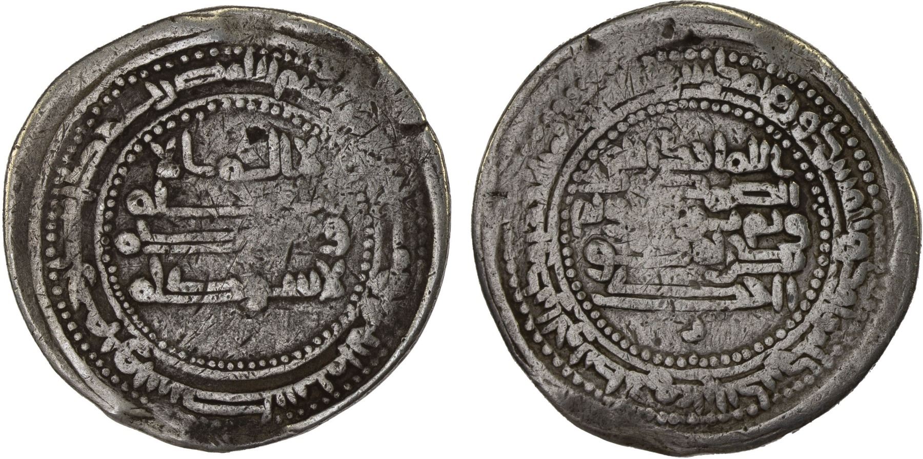 IMRANIDS (BATIHA) period: Anonymous, ca. 1009-1010, AR dirham (7.1og), Wasit, AH400 (likely), A-1587X, first half of the kalima, mint/date formula around // Qur'an sura 112 in center, verse 9:33 around, probably struck during the complex period between the 'Imranids, the Buwayhids, and various rivals in the region of Wasit; unpublished, Fine, RRR.